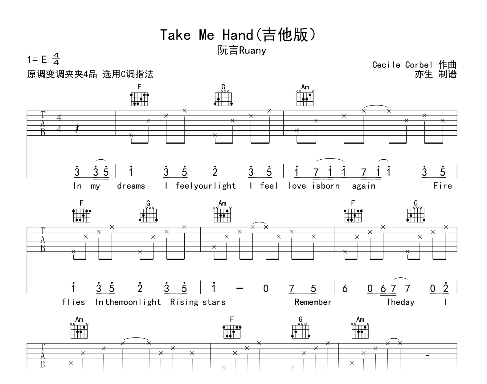 Take Me Hand吉他谱 - Take - C调吉他弹唱谱