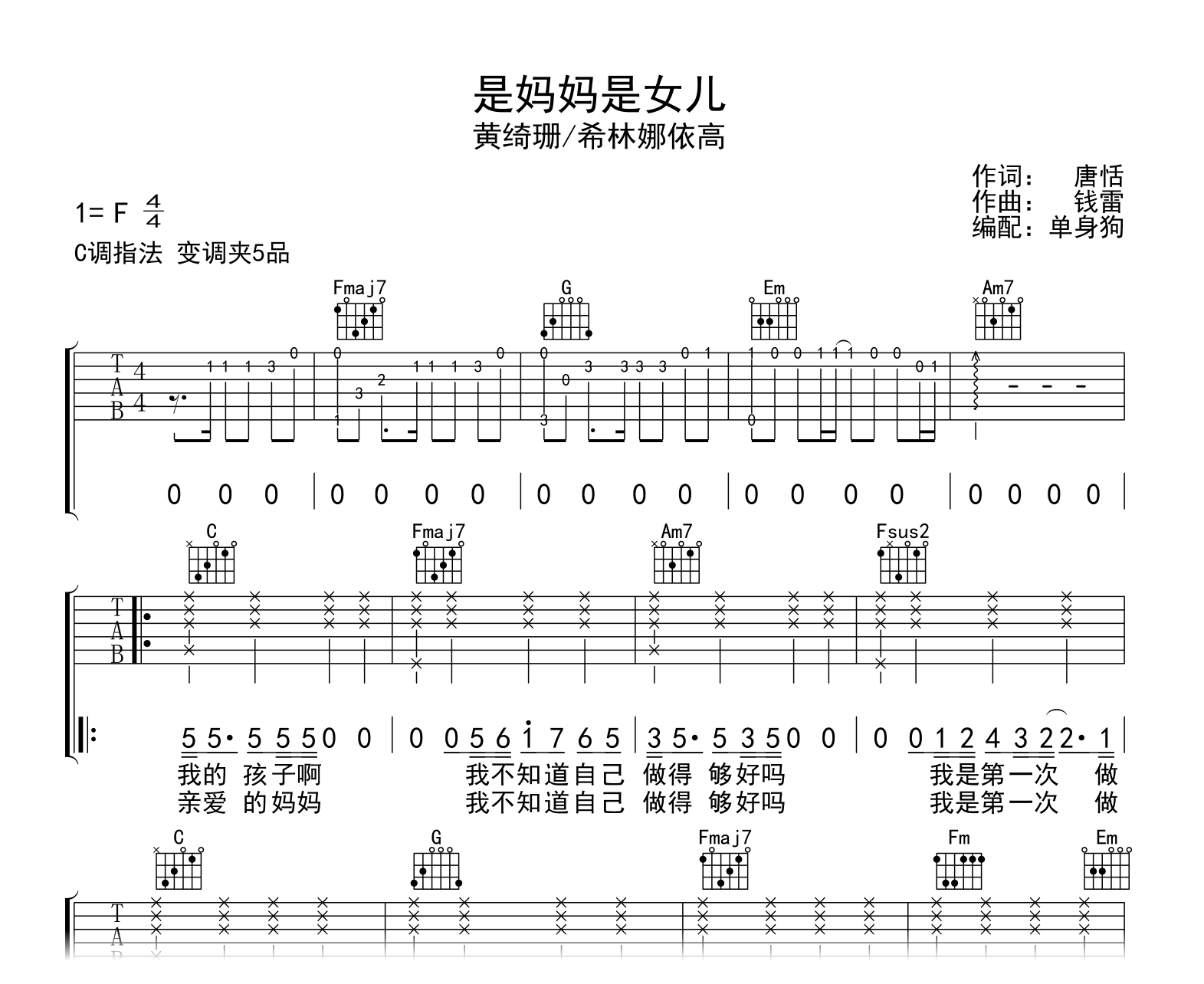当前位置:琴谱网>吉他弹唱>是妈妈是女儿
