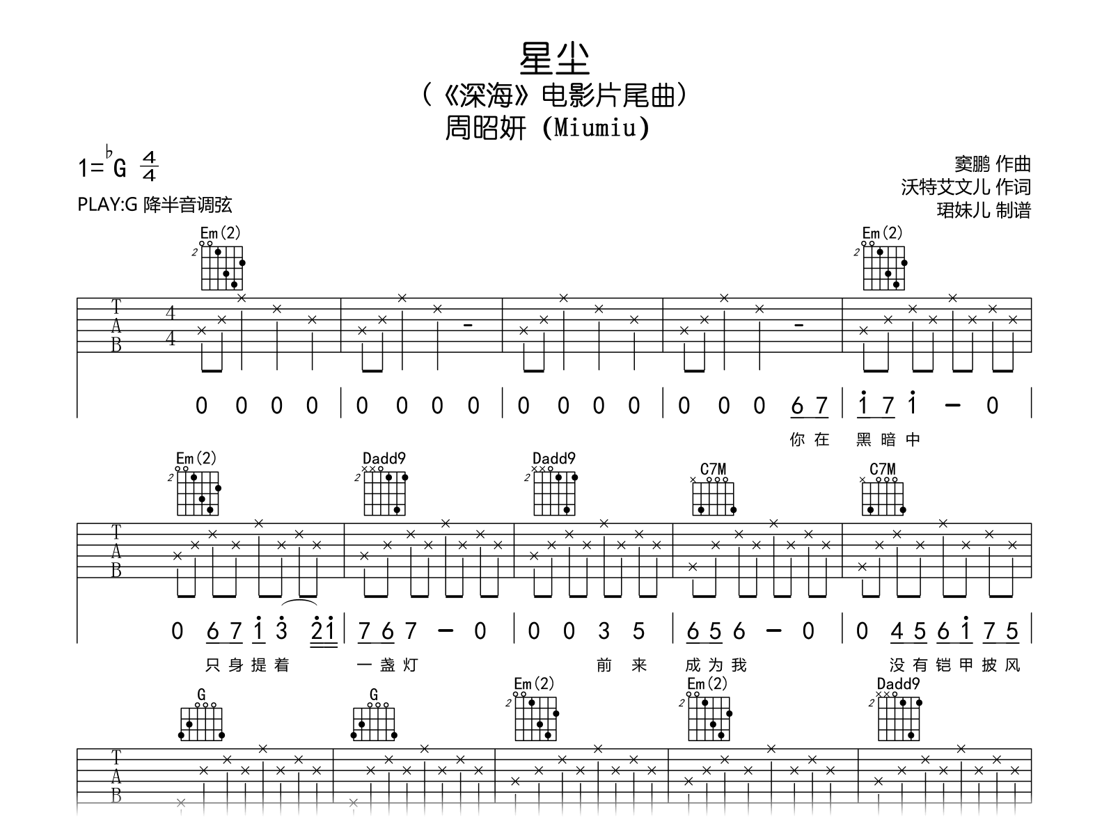 星尘吉他谱 - 周昭妍(Miumiu) - G调吉他弹唱谱