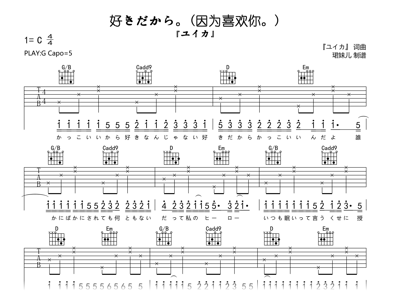 好きだから因为喜欢你吉他谱 - ユイカ - G调吉他弹唱谱