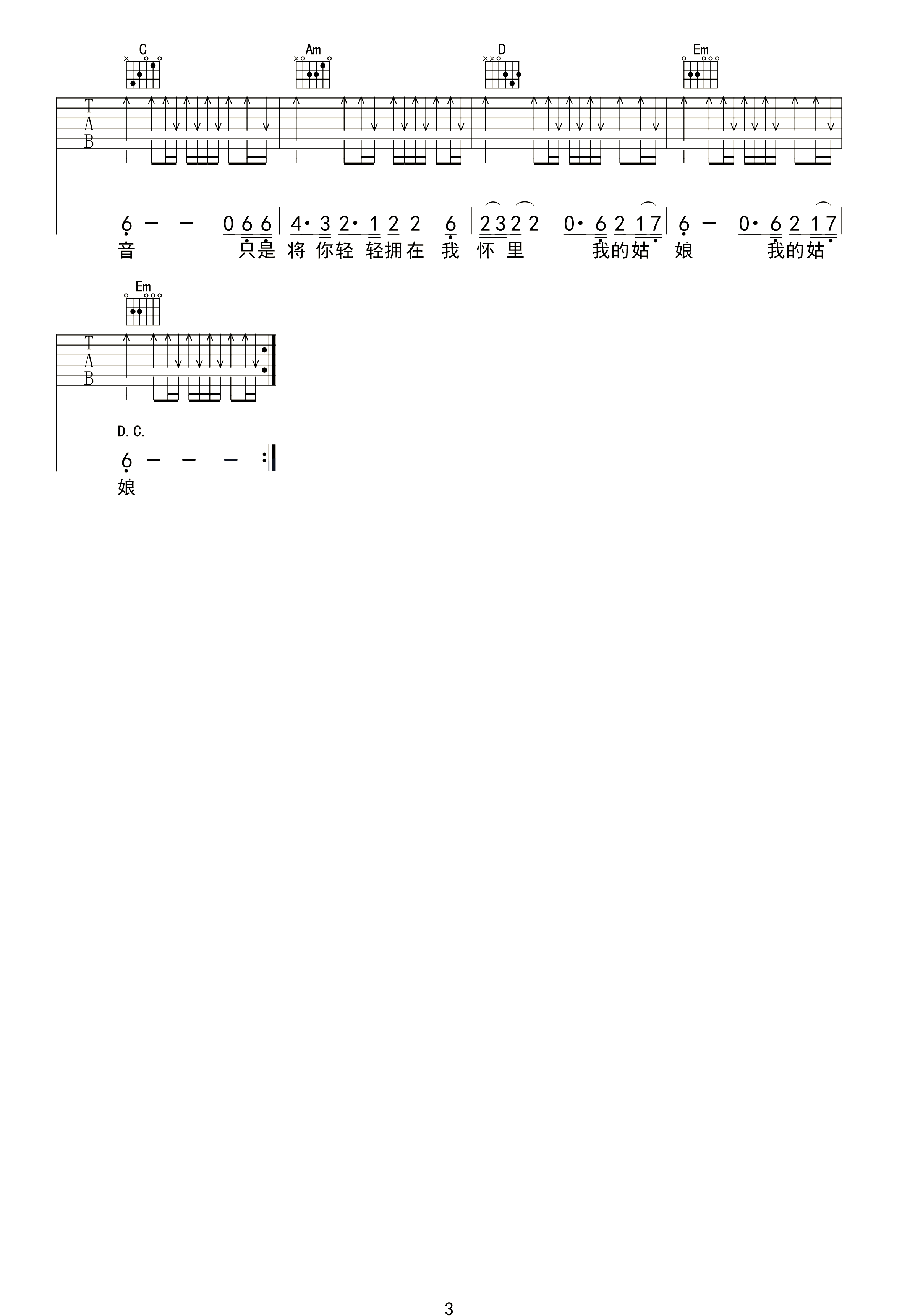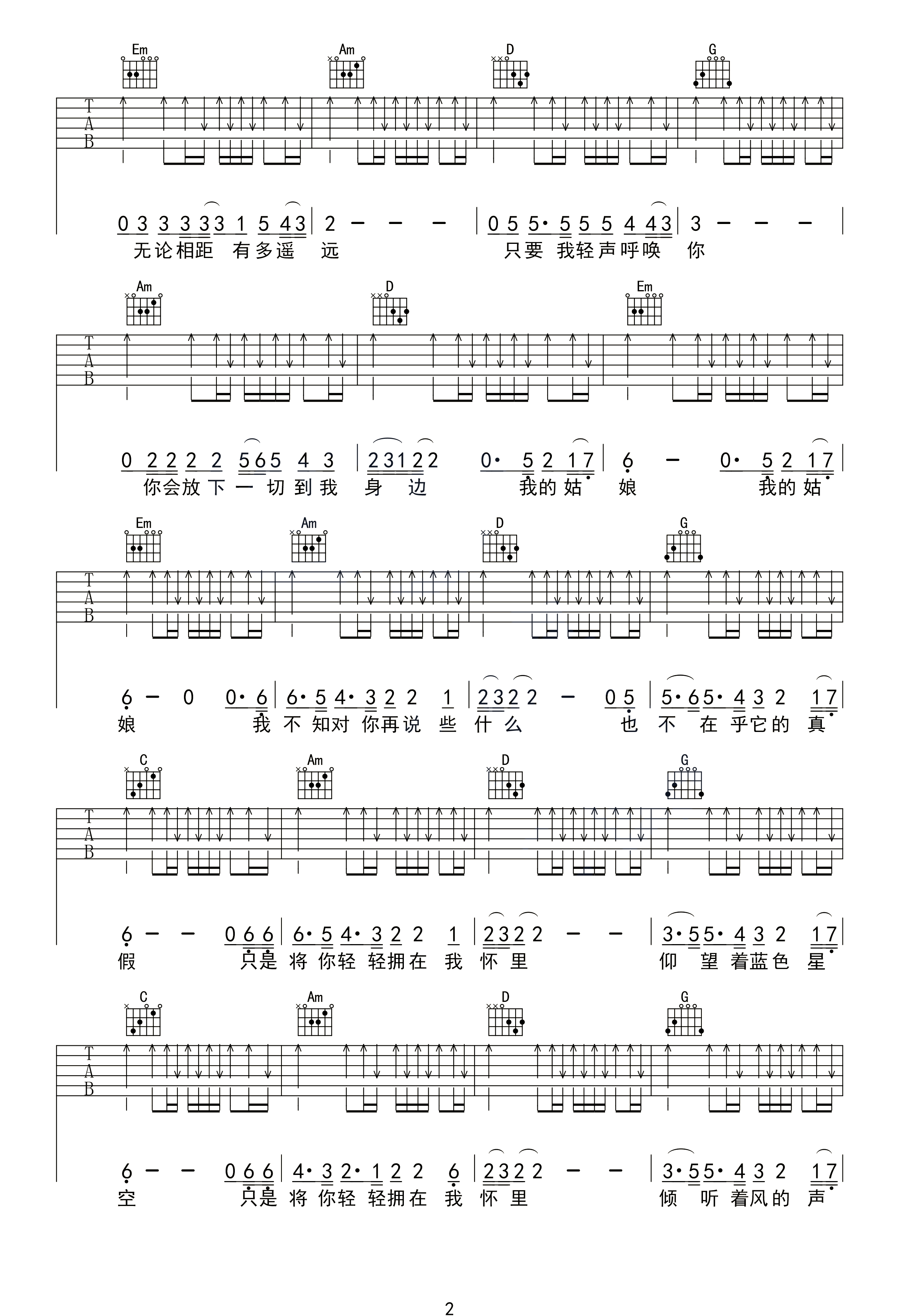 曲谱介绍: 吉他谱介绍:星空吉他谱,许巍演唱的一首歌曲,4/4拍的节奏,这首歌曲的原调为A调,这里曲谱采用了G调指法进行编配,演唱时夹变调夹2品可回到原调,也可根据个人实际嗓音情况选择。曲谱由琴谱网更新上传,共3张高清图片弹唱吉他谱例,曲谱来源于网络转载,编配制谱者暂不详。这首歌的旋律非常美,听到这首歌把你的灵魂置身于一个绝美的境地,仿佛在蔚蓝色星空下、面向辽阔的原野、轻抚微风都出现在我们面前。