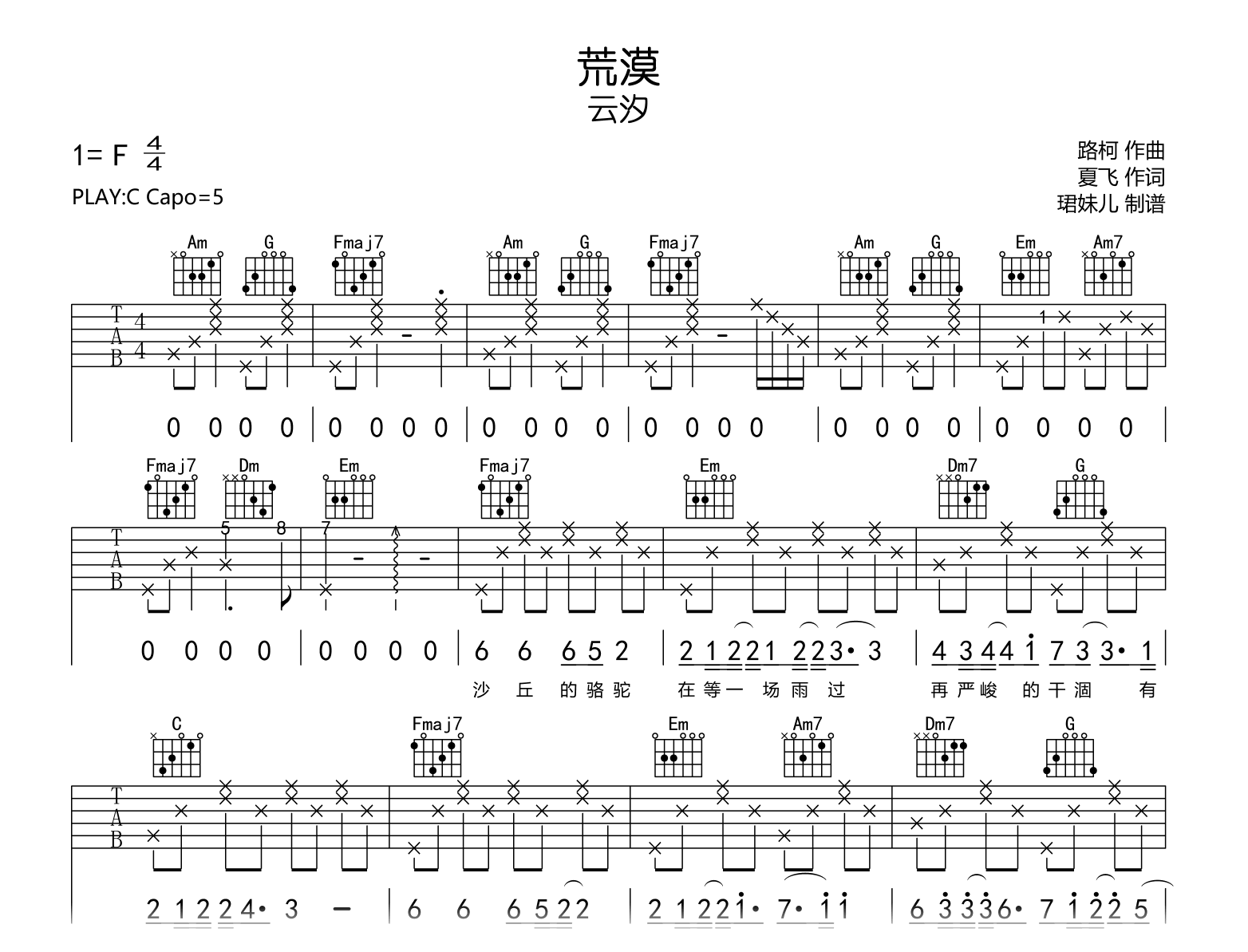 荒漠吉他谱 - 云汐 - C调吉他弹唱谱