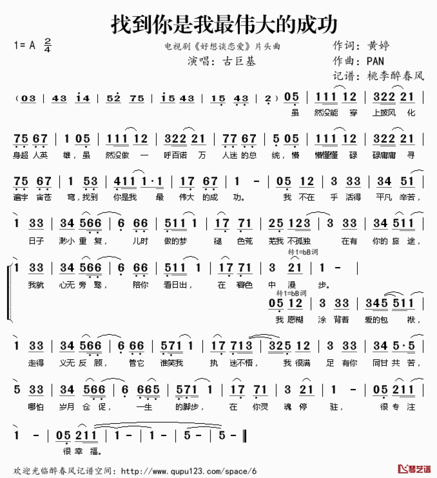 曲谱介绍: 古巨基《好想谈恋爱》歌词_简谱