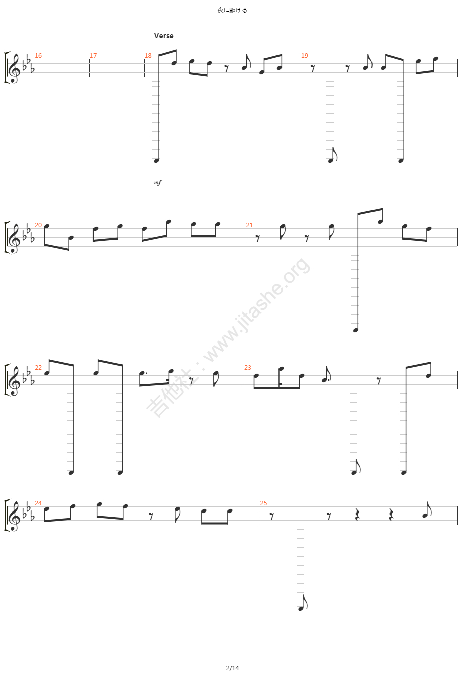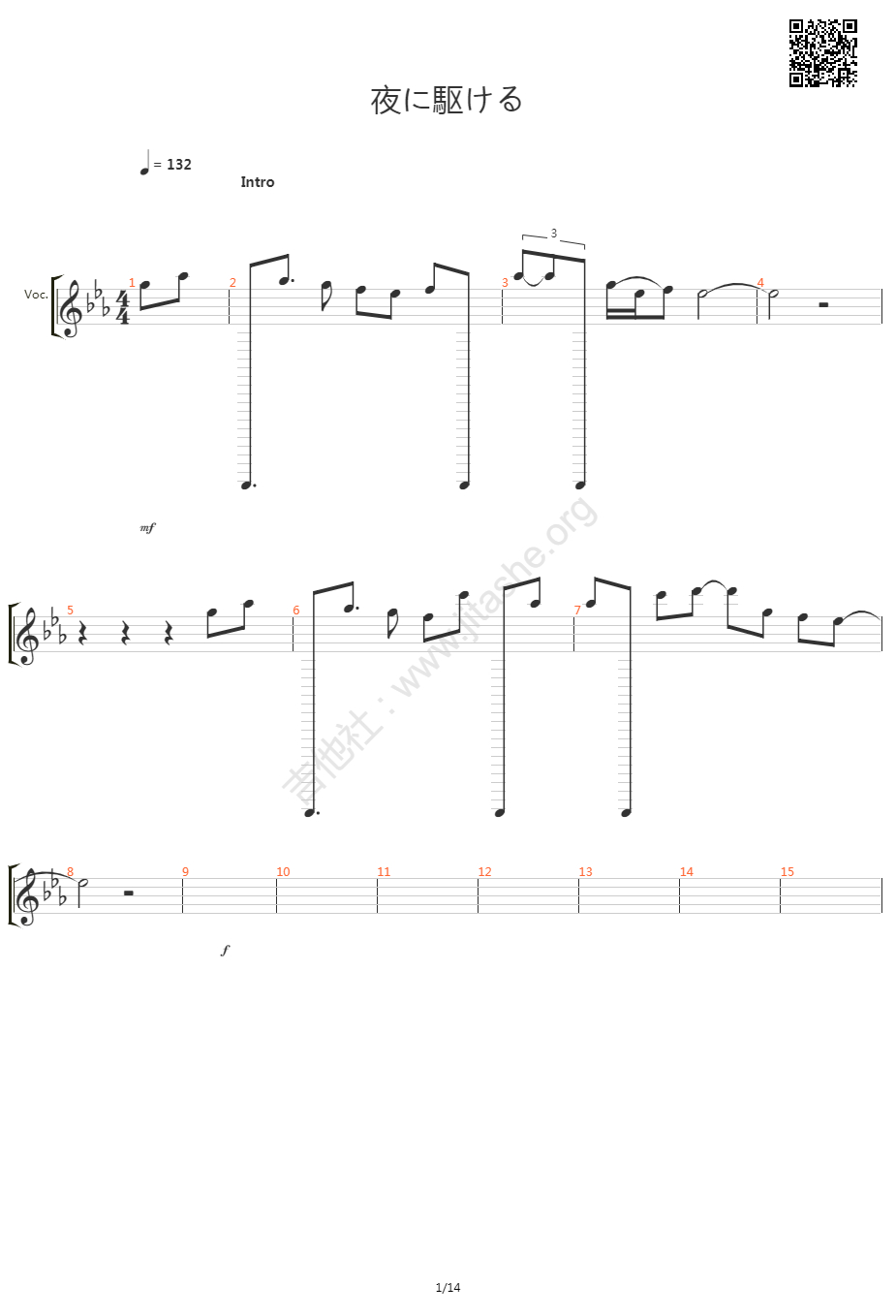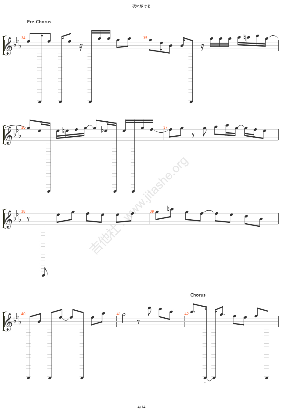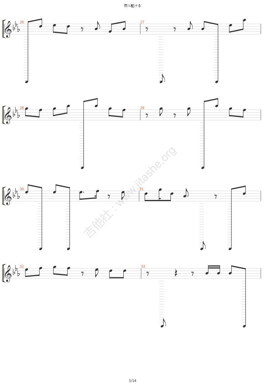 曲谱介绍: 《夜に駆ける》吉他弹唱谱,共有4张高清图谱。