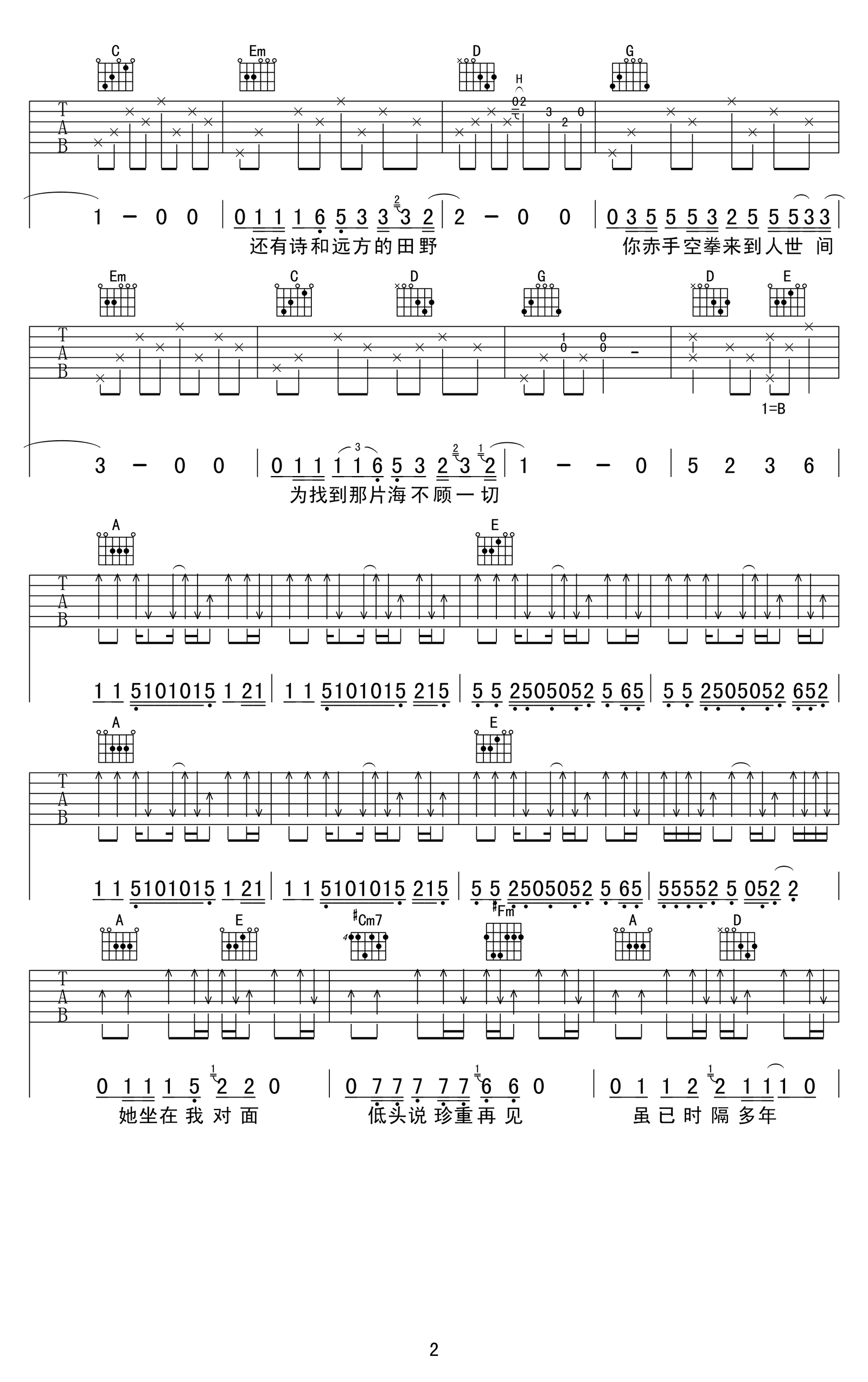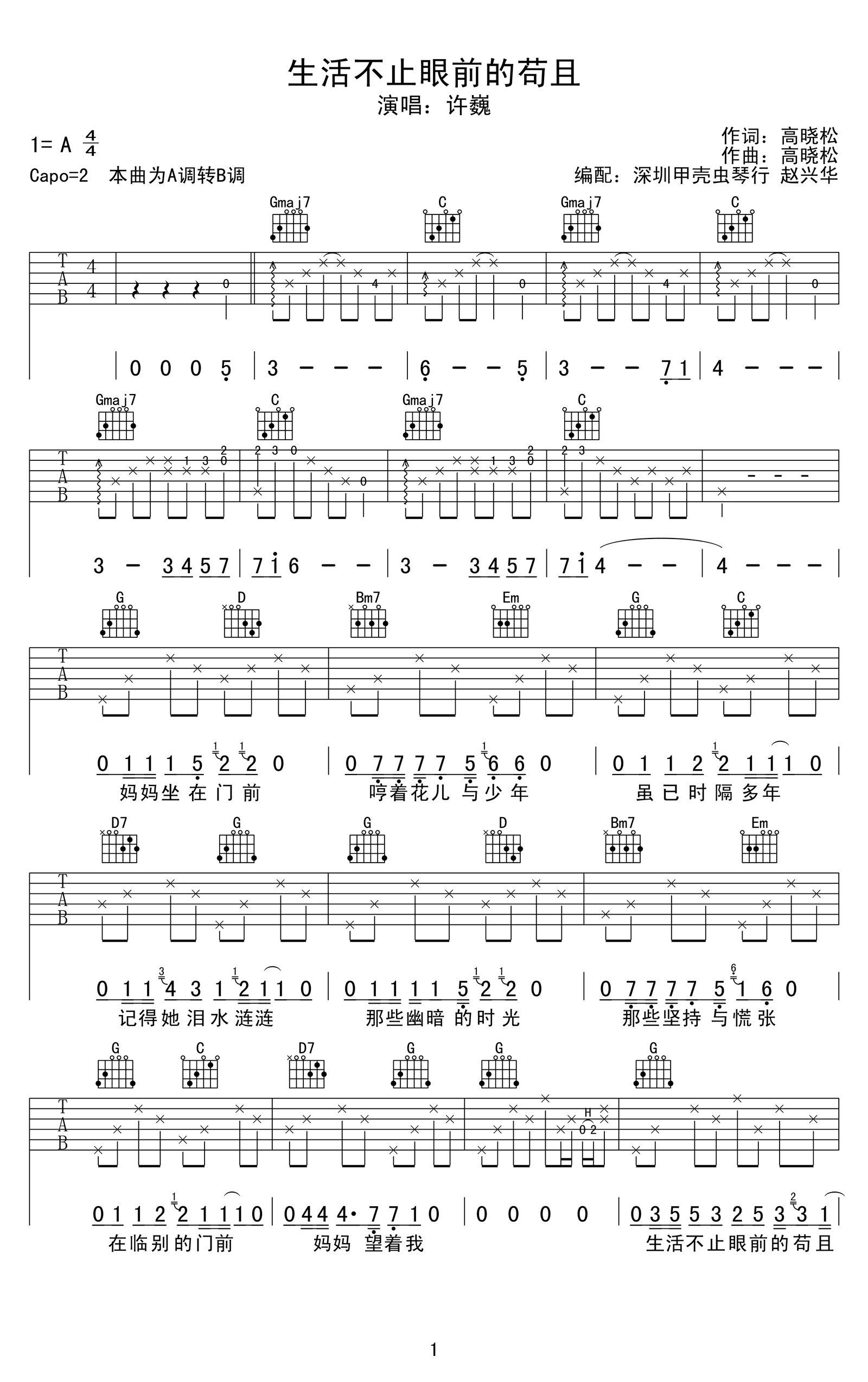 曲谱介绍: 许巍《生活不止眼前的苟且》吉他弹唱谱,采用A调指法编配,共有3张高清图谱。