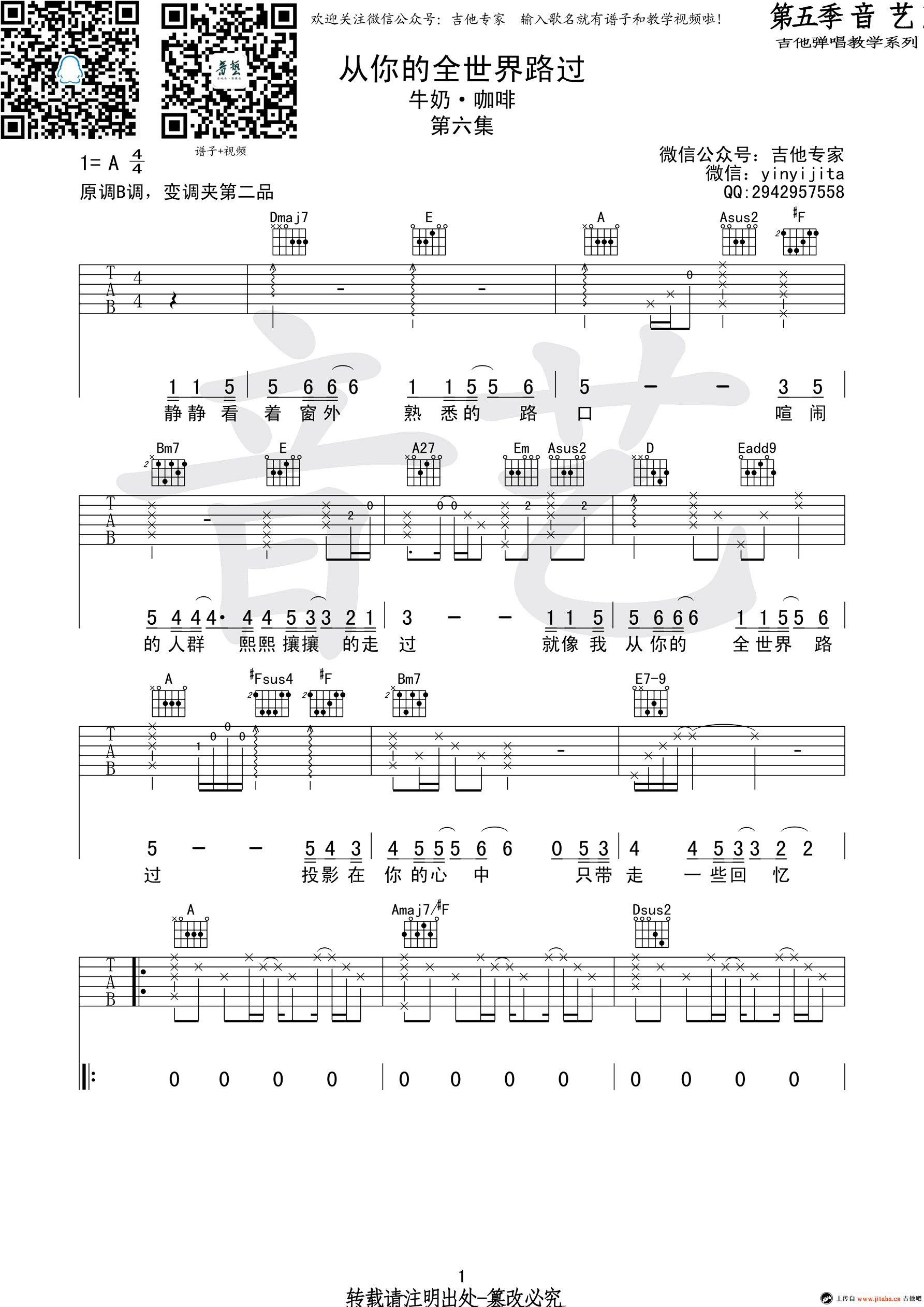 从你的全世界路过吉他谱 - 牛奶咖啡 - 吉他弹唱谱