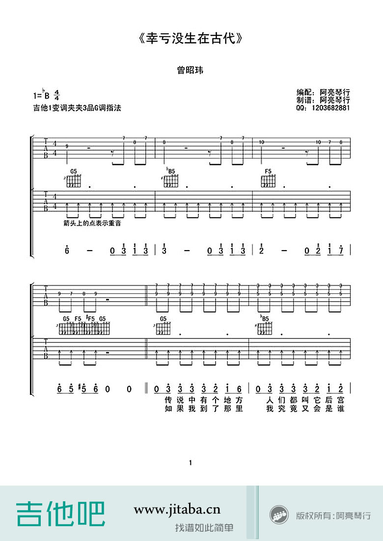 幸亏没生在古代吉他谱 - 曾昭玮 - 吉他弹唱谱