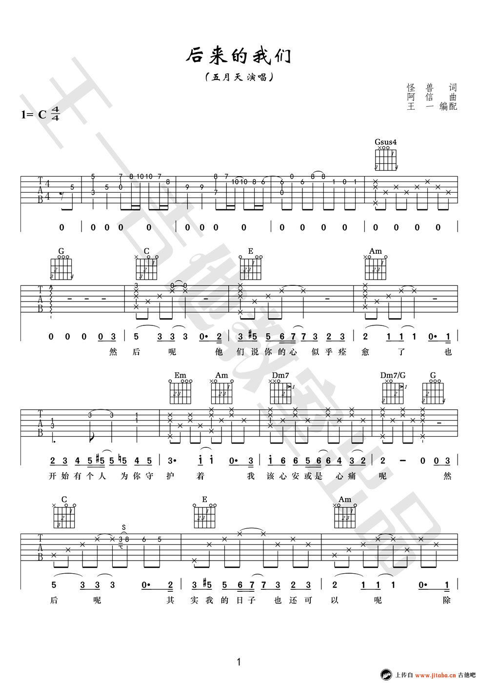 曲谱介绍: 五月天 后来的我们吉他谱C调和弦谱