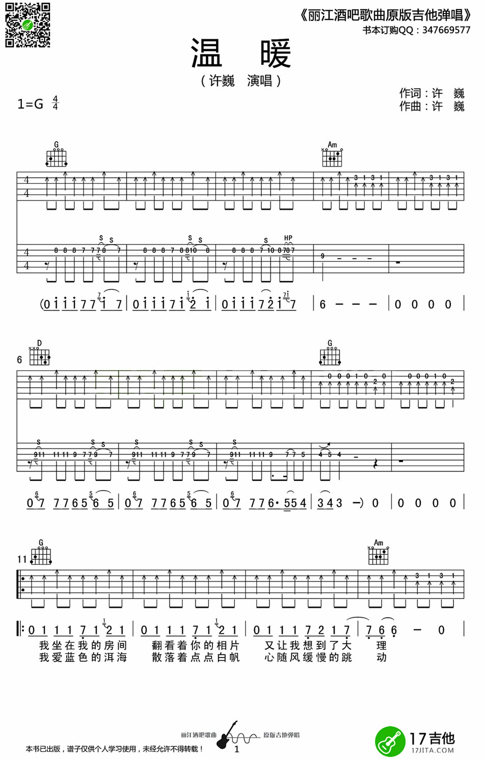 温暖吉他谱 - 许巍 - G调吉他弹唱谱