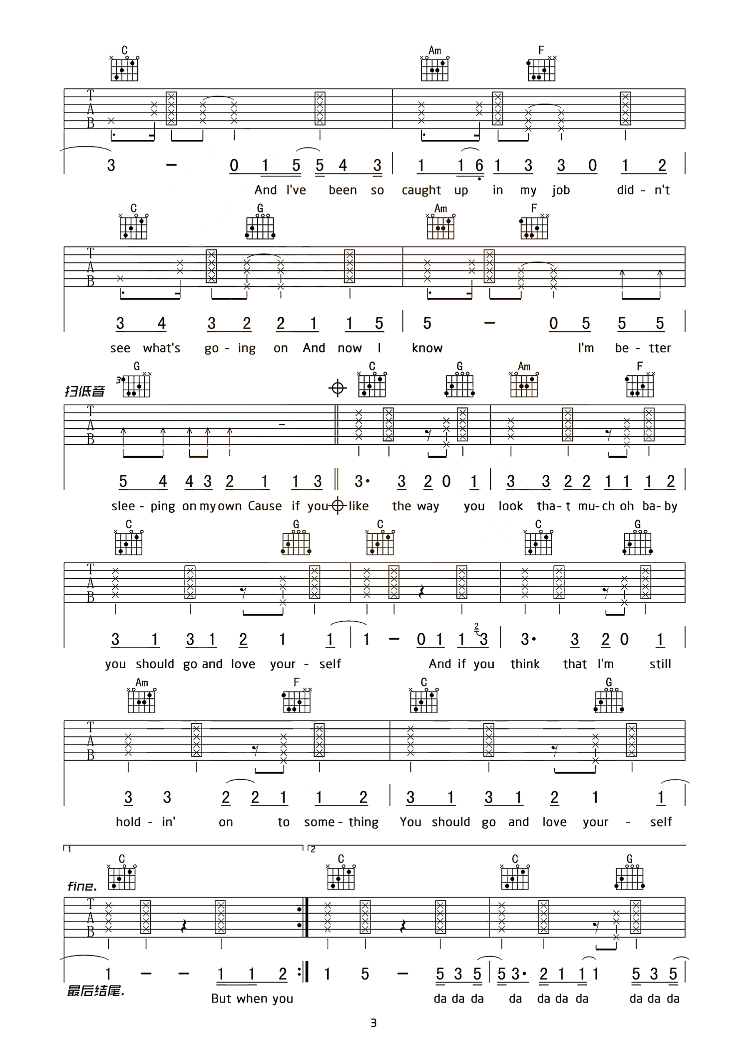 Love Yourself吉他谱 - Justin Bieber - C调吉他弹唱谱