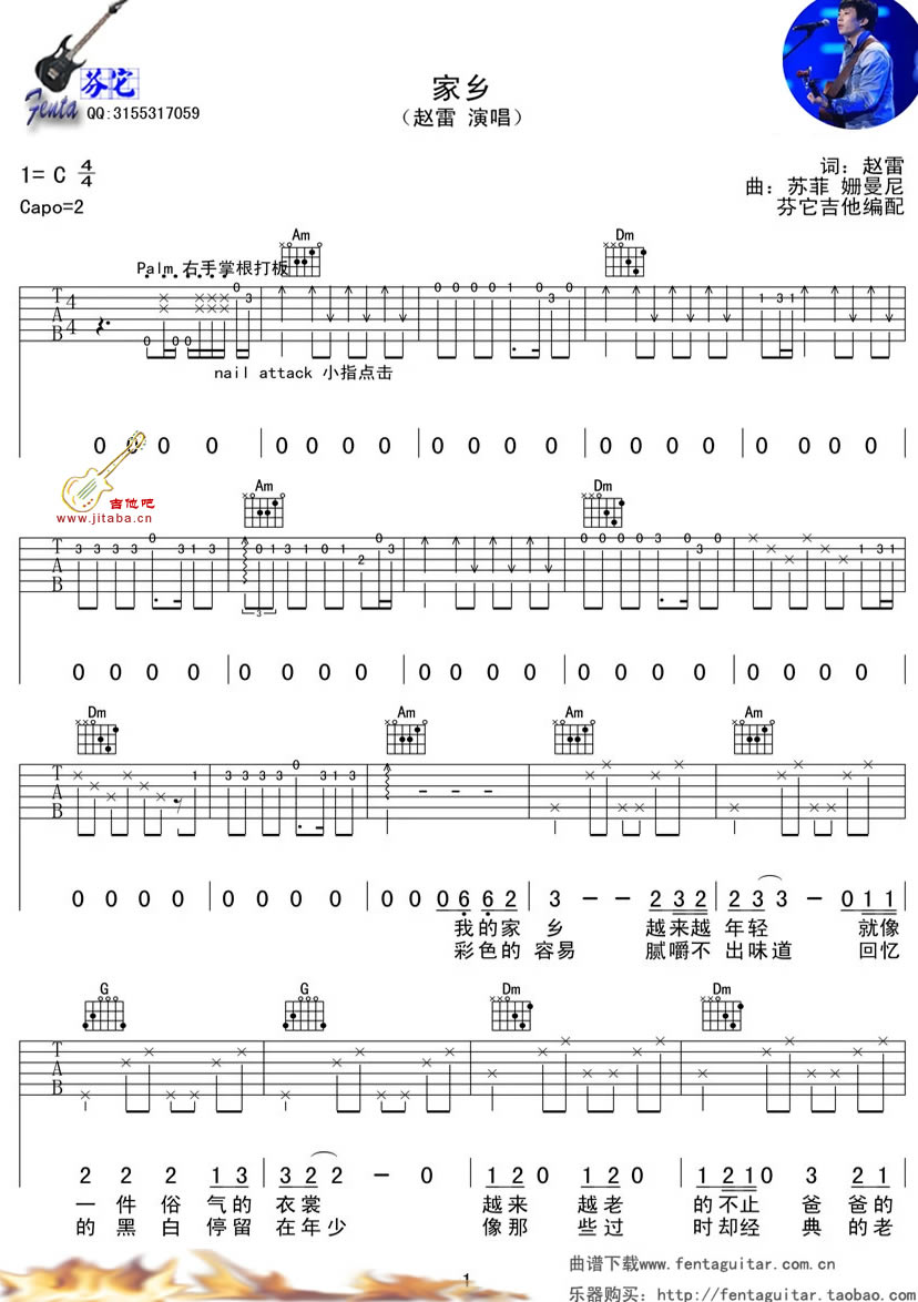 曲谱介绍: 赵雷家乡吉他谱,C调指法六线谱共四张图片,赵雷的民谣歌曲,总能够用文字创造空间,以音乐切换画面。总会有一些这样的时刻吧,尽管被无尽忙碌缠身,当心情在月光里弥漫,会想起走过的某个城市。那座城市里,住着曾经过你生命的某个人。岁月苍茫,时光宽宥。漂泊的人更懂得生活的苦涩,月圆之夜,你是否也被这样的一把吉他惹红眼眶,想起了家乡。赵雷演唱的家乡吉他弹唱谱,感谢芬它吉他编配,