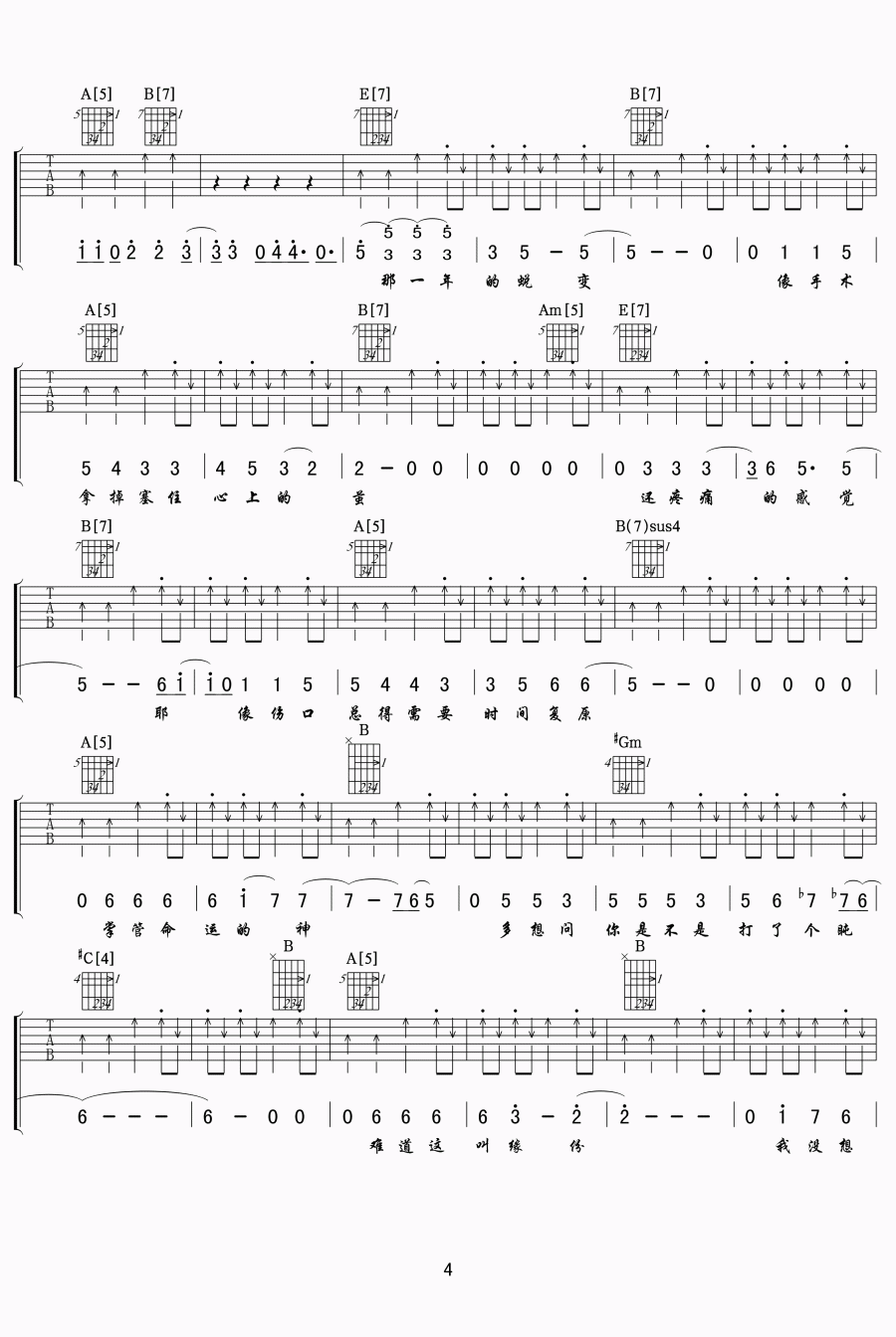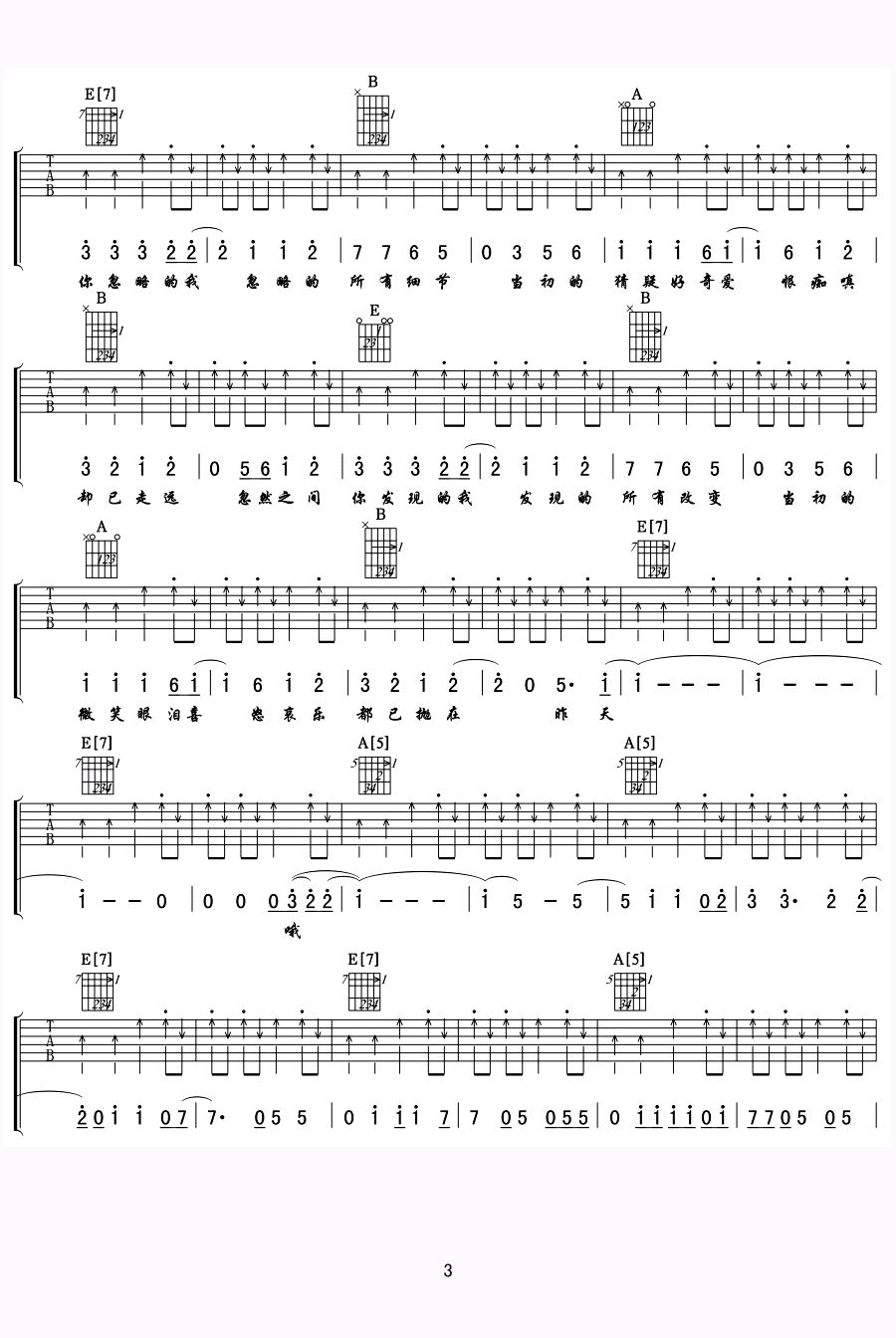 曲谱介绍: 苏打绿《再遇见》吉他谱,吉他降半音E调和弦来弹,清新的音乐,如诗的歌词,唱出了很多人无法言说的小情绪。再遇见吉他弹唱谱,图片谱高清版,完整图片谱共8张,分成两页为琴友们显示。我们一定还有未完待续的故事,有一天终会再遇见,那些许多未知的美好与灿烂,才刚刚拉开序幕。苏打绿歌曲吉他谱,感谢小叶歌辛苦编配制谱分享。