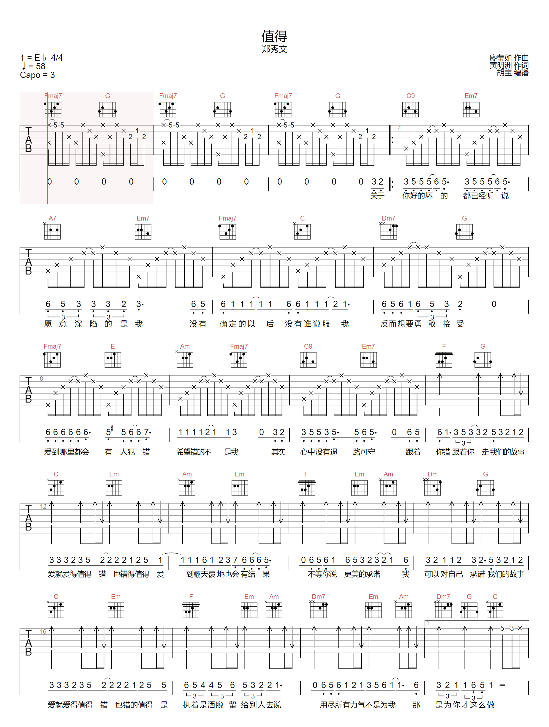 当前位置:琴谱网>吉他弹唱>值得