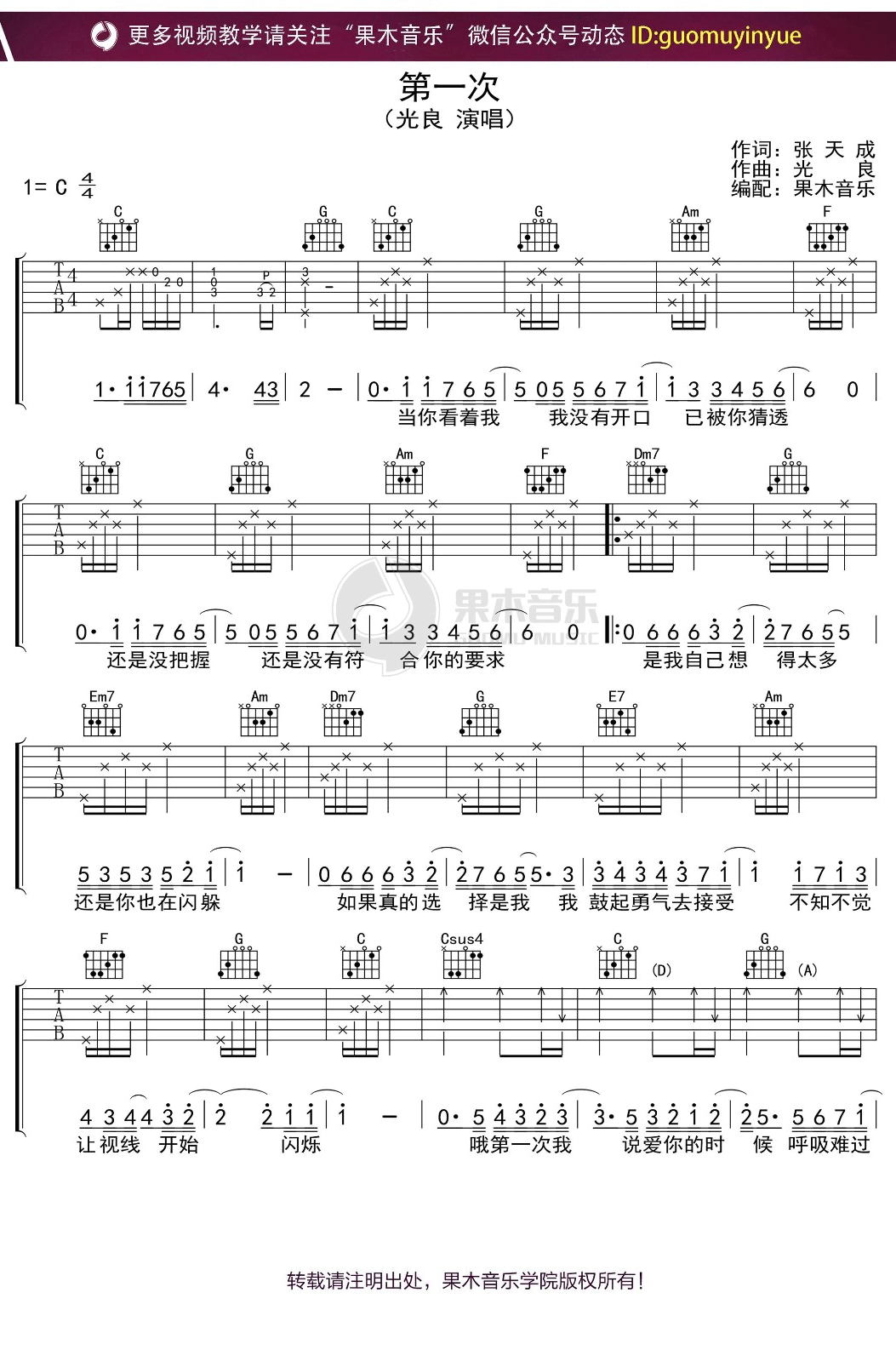 第一次吉他谱 - 光良 - C调吉他弹唱谱 - 原版