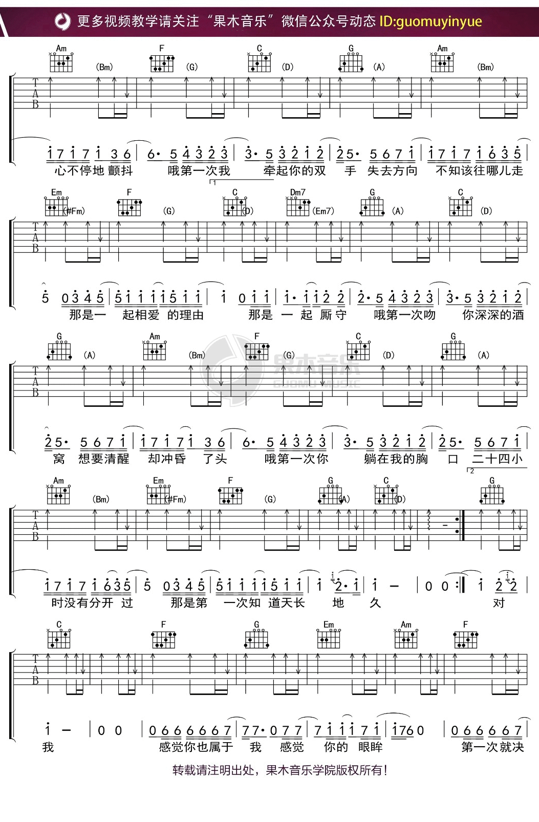 当前位置:琴谱网>吉他弹唱>第一次