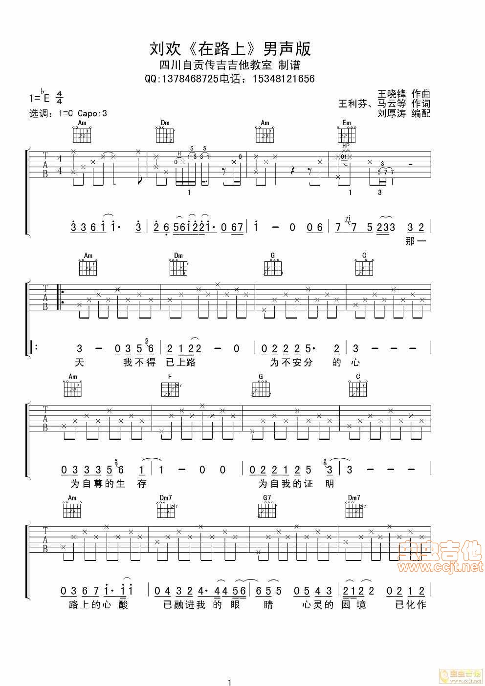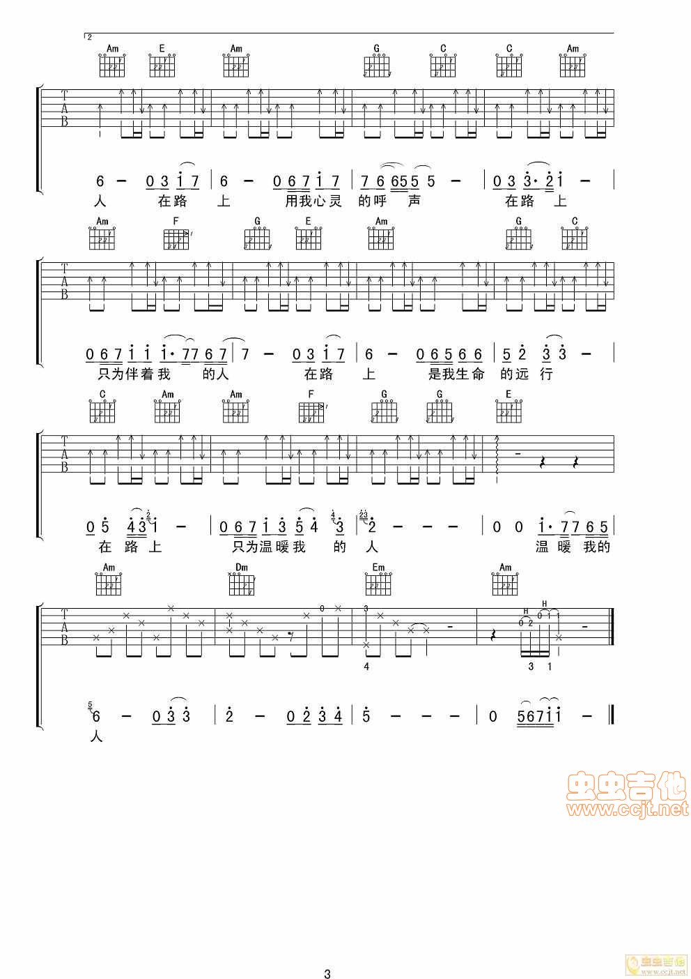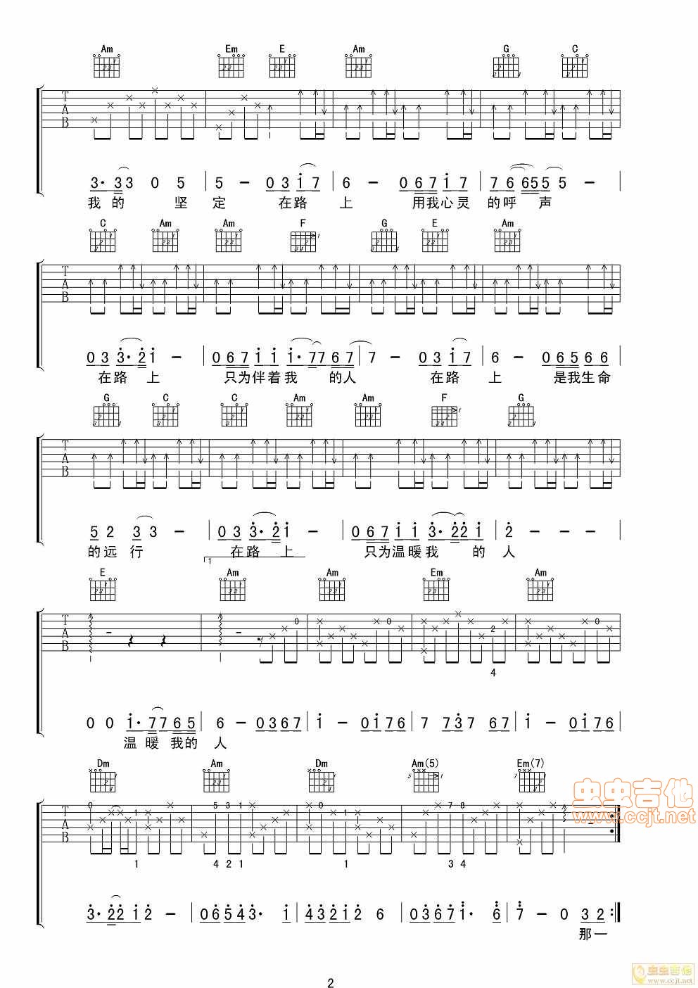 在路上吉他谱 - 刘欢 - 吉他弹唱谱