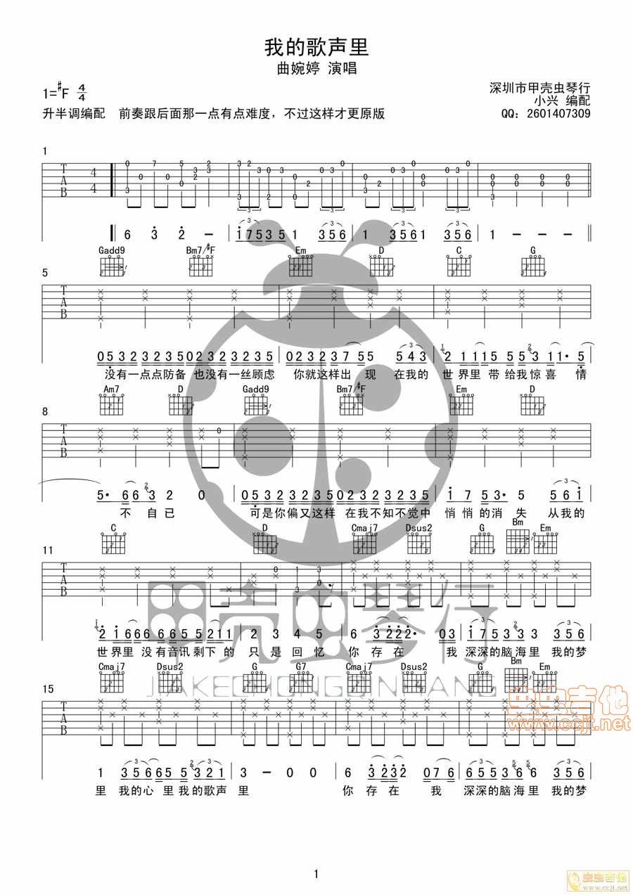 我的歌声里吉他谱 - 曲婉婷 - 吉他弹唱谱 - 原版