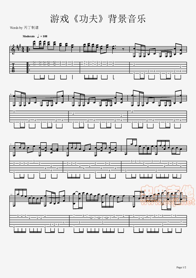 曲谱介绍: 电子游戏《功夫》吉他弹唱谱,共有2张高清图谱,免翻页排版设计。