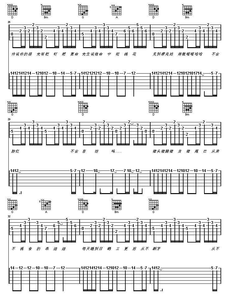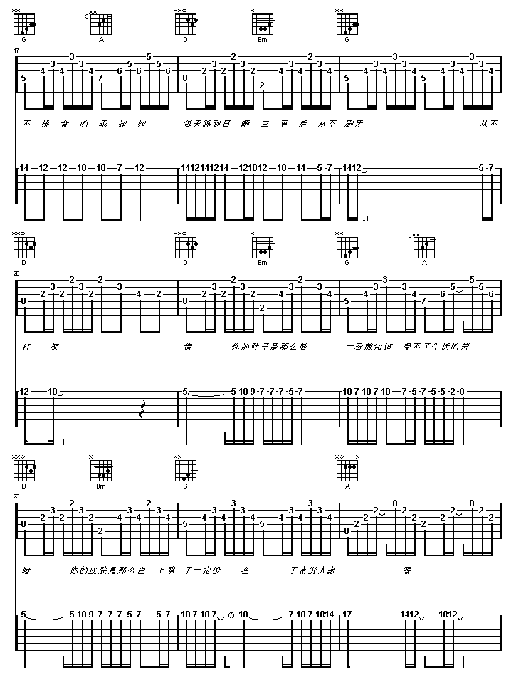 猪之歌吉他谱 - 吉他弹唱谱
