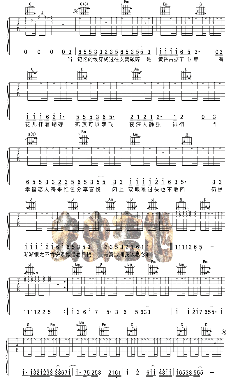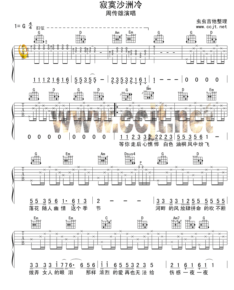 寂寞沙洲冷吉他谱 - 吉他弹唱谱