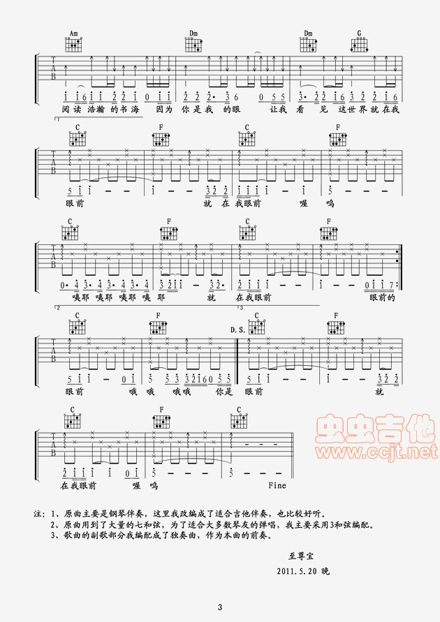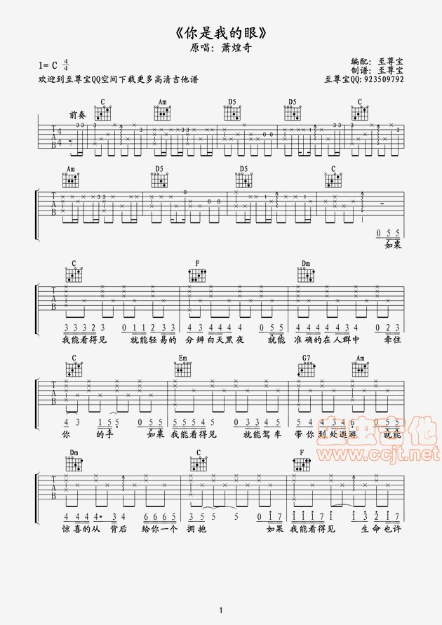 曲谱介绍: 《你是我的眼》吉他弹唱谱,共有3张高清图谱。
