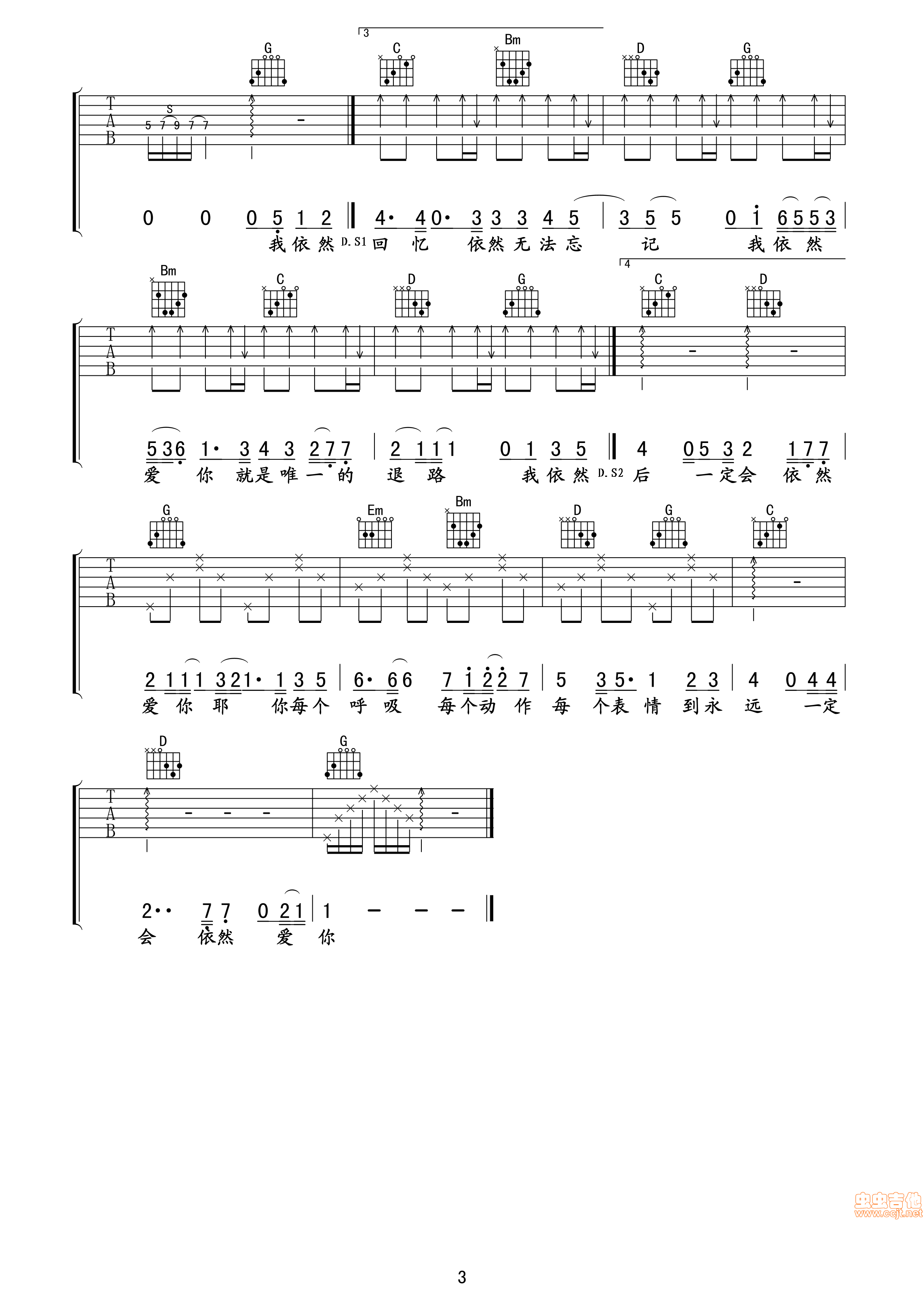 曲谱介绍: 依然爱你《依然爱你王力宏》吉他弹唱谱,共有3张高清图谱。