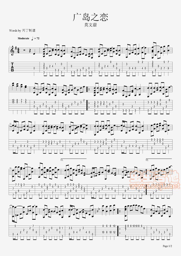 曲谱介绍: 《广岛之恋》吉他独奏谱,共有2张高清图谱,免翻页排版设计。
