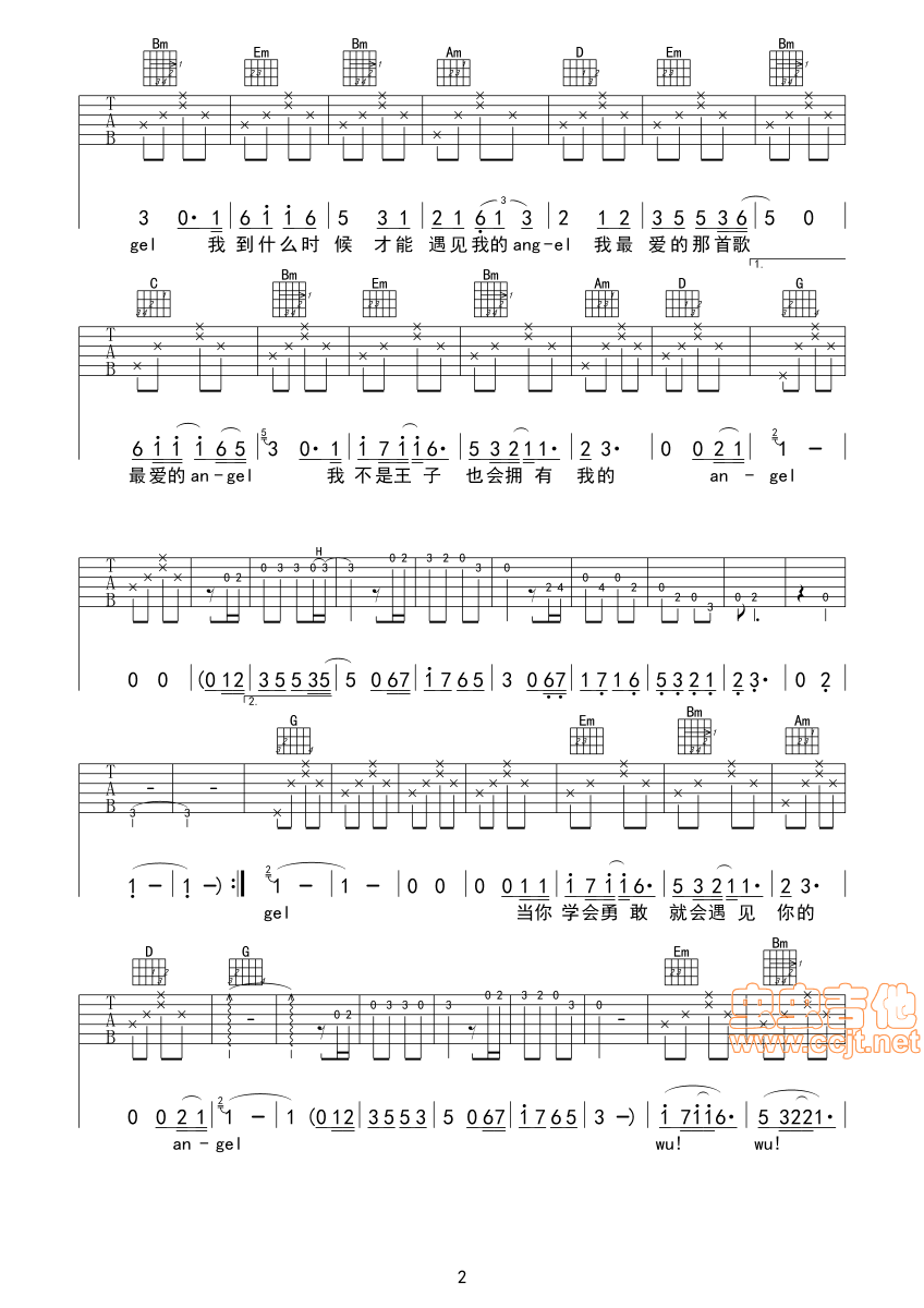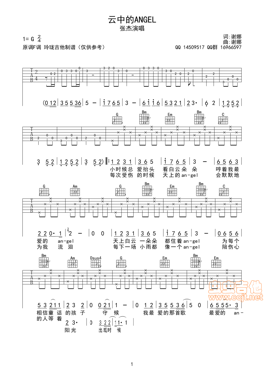曲谱介绍: 《云中的Angel》吉他弹唱谱,共有3张高清图谱。