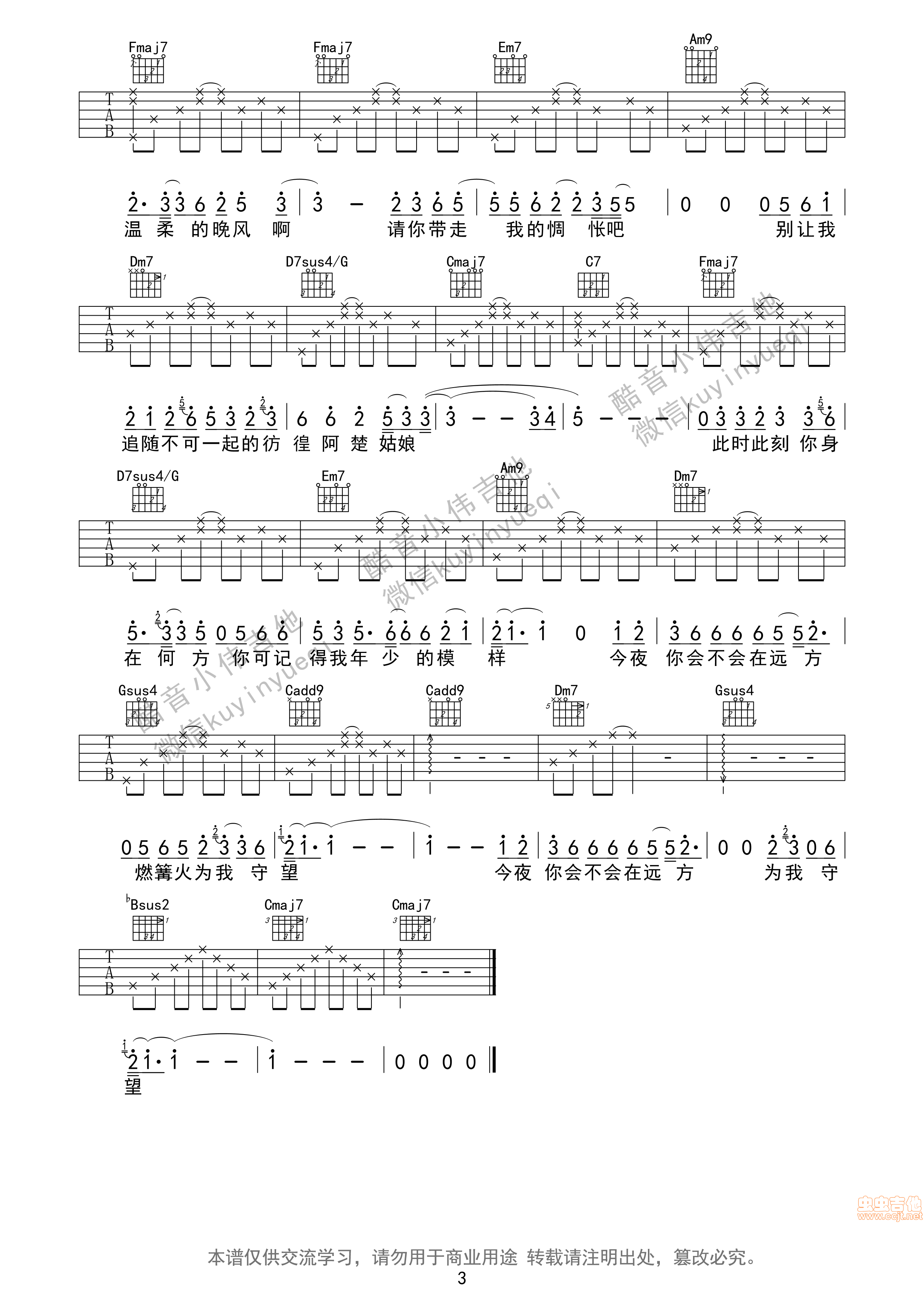 当前位置:琴谱网>吉他弹唱>阿楚姑娘
