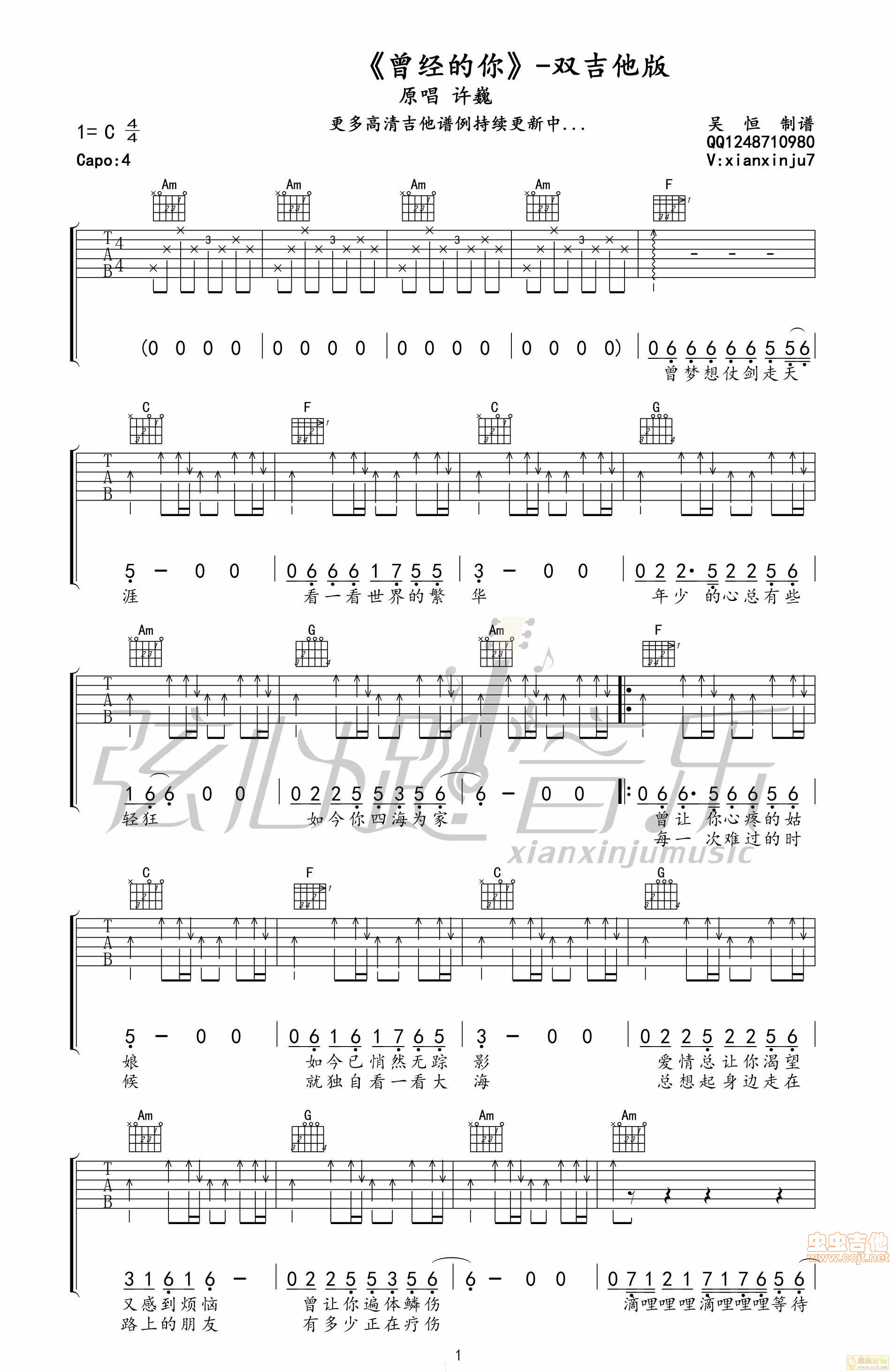 曾经的你吉他谱 - 许巍 - 吉他弹唱谱