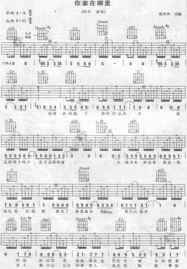 当前位置:琴谱网>吉他弹唱>你家在哪里