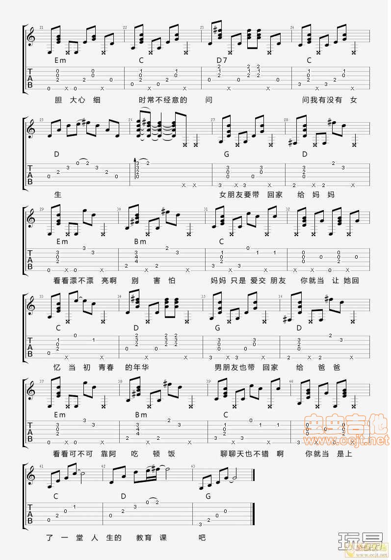 女朋友要带回家吉他谱 - 吉他弹唱谱