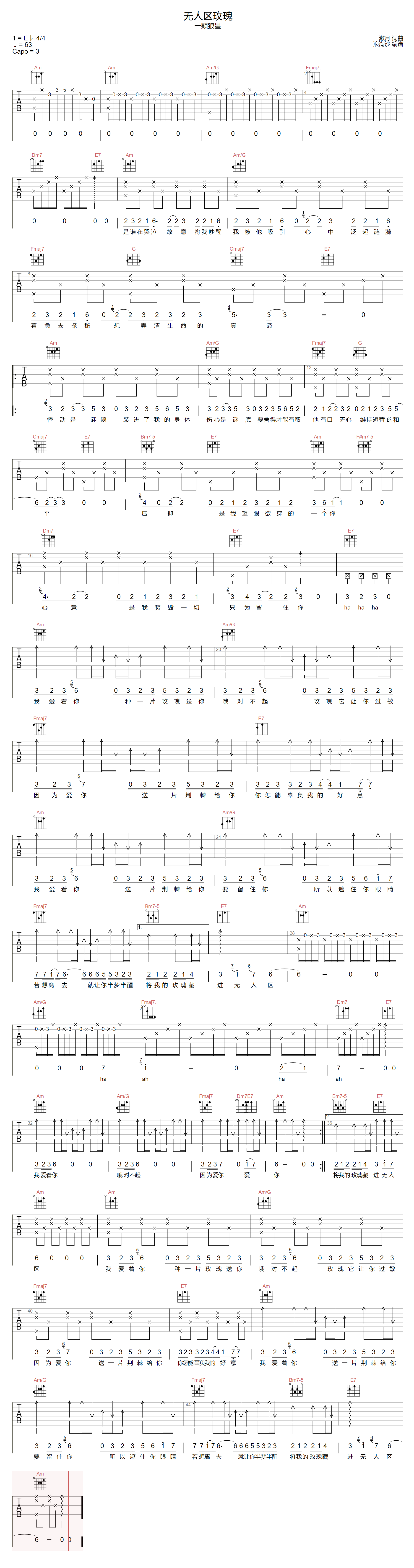 曲谱介绍: 一颗狼星《无人区玫瑰》吉他弹唱谱,采用C调指法编配原版,共有1张高清图谱,免翻页排版设计。