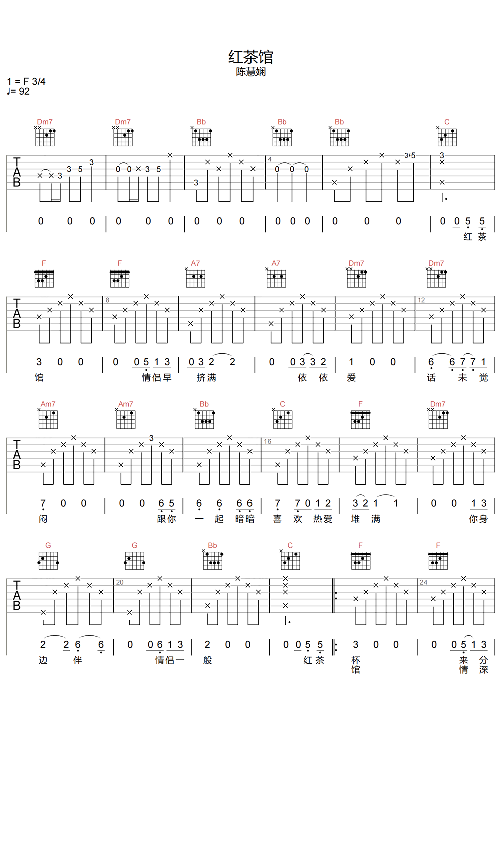 红茶馆吉他谱 - 陈慧娴 - F调吉他弹唱谱 - 原版