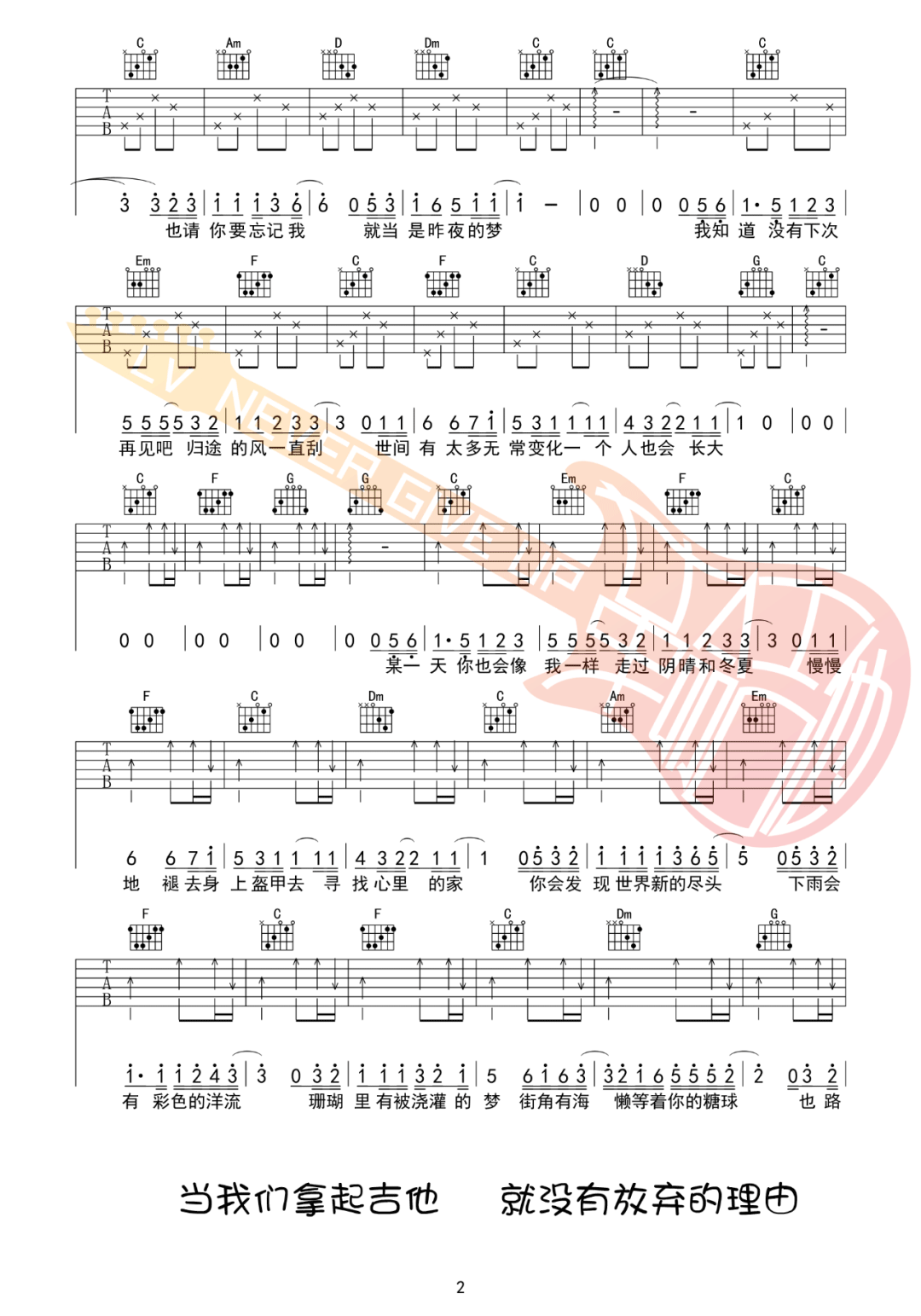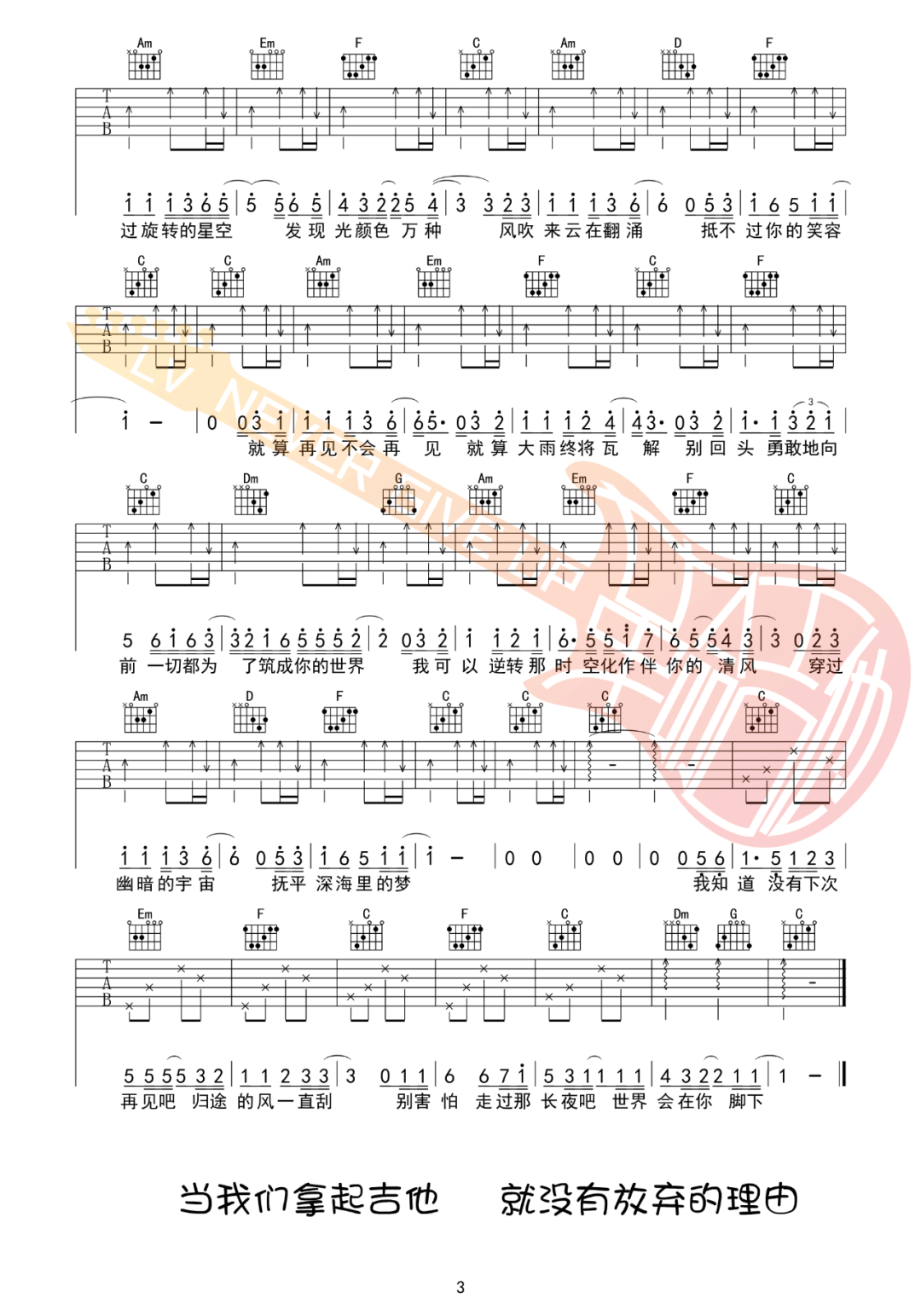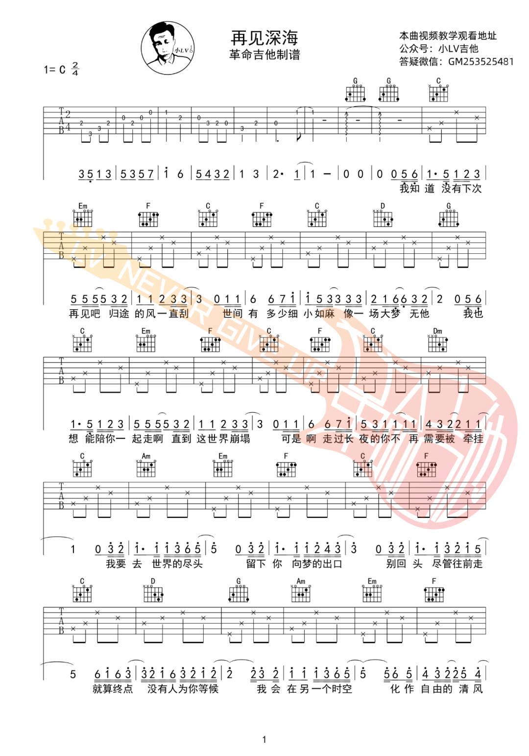 再见深海吉他谱 - 唐汉霄 - C调吉他弹唱谱 - 原版