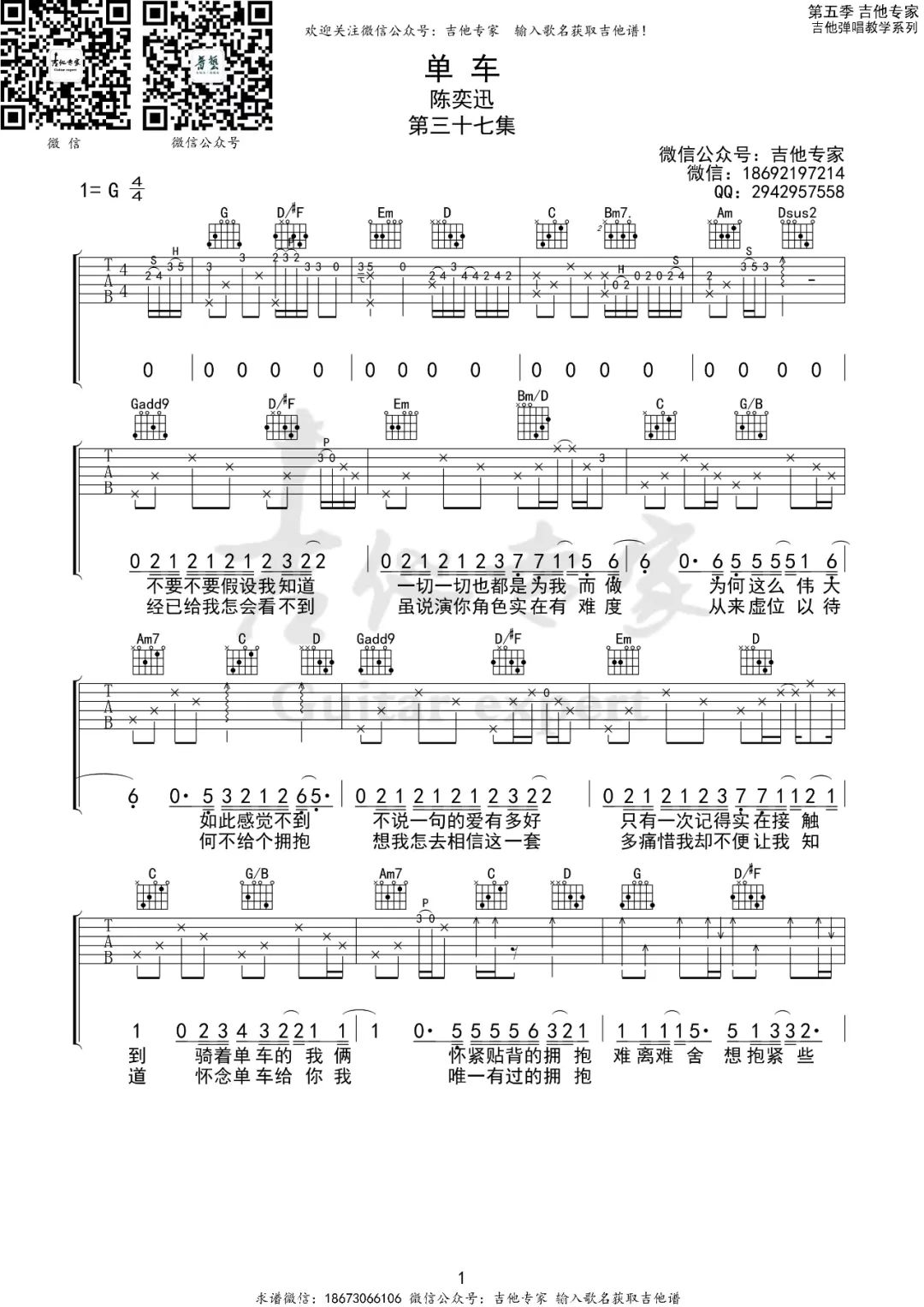 单车吉他谱 - 陈奕迅 - G调吉他弹唱谱 - 原版
