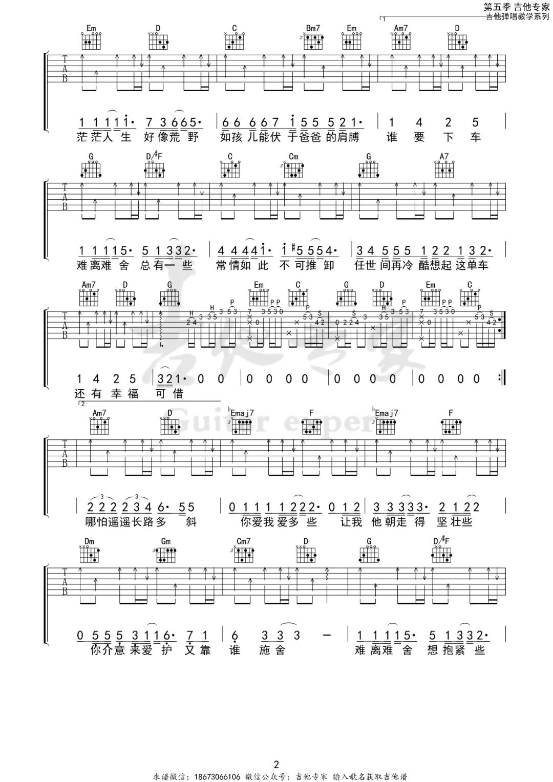 曲谱介绍: 吉他谱介绍:单车吉他谱,陈奕迅演唱的一首歌曲,4/4拍的节奏,这首歌曲的原调为G调,这里曲谱采用了G调指法进行编配,演唱时可不夹变调夹,曲谱由琴谱网更新上传,共3张高清图片弹唱吉他谱例,来源于@吉他专家编配出品。世界上总有一个人,明明始终把你当个孩子宠,却仍不甘心地念叨着,你什么时候才会长大?这个人就是我们的眼中无所不能的超人——爸爸。