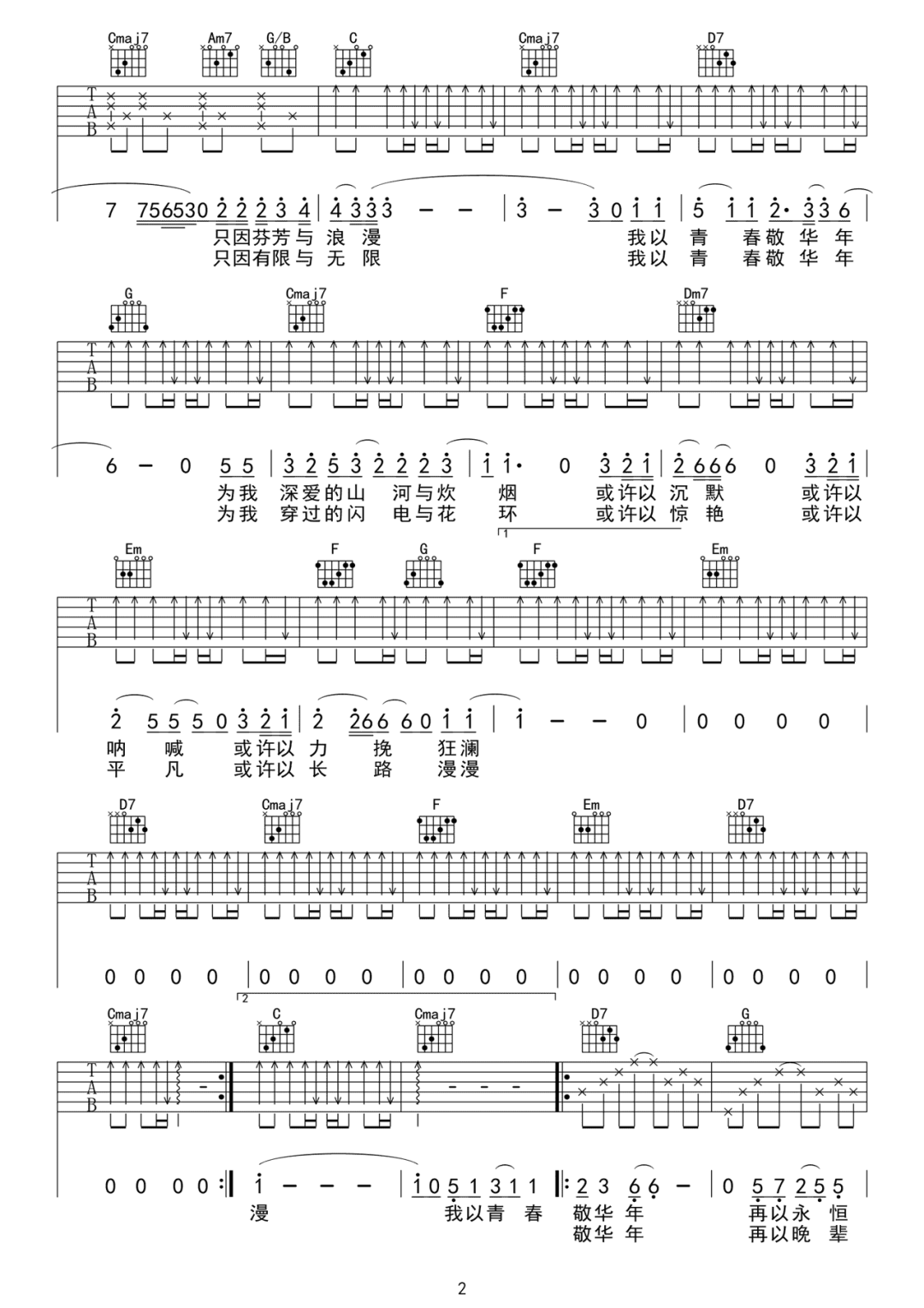 当前位置:琴谱网>吉他弹唱>我以青春敬华年