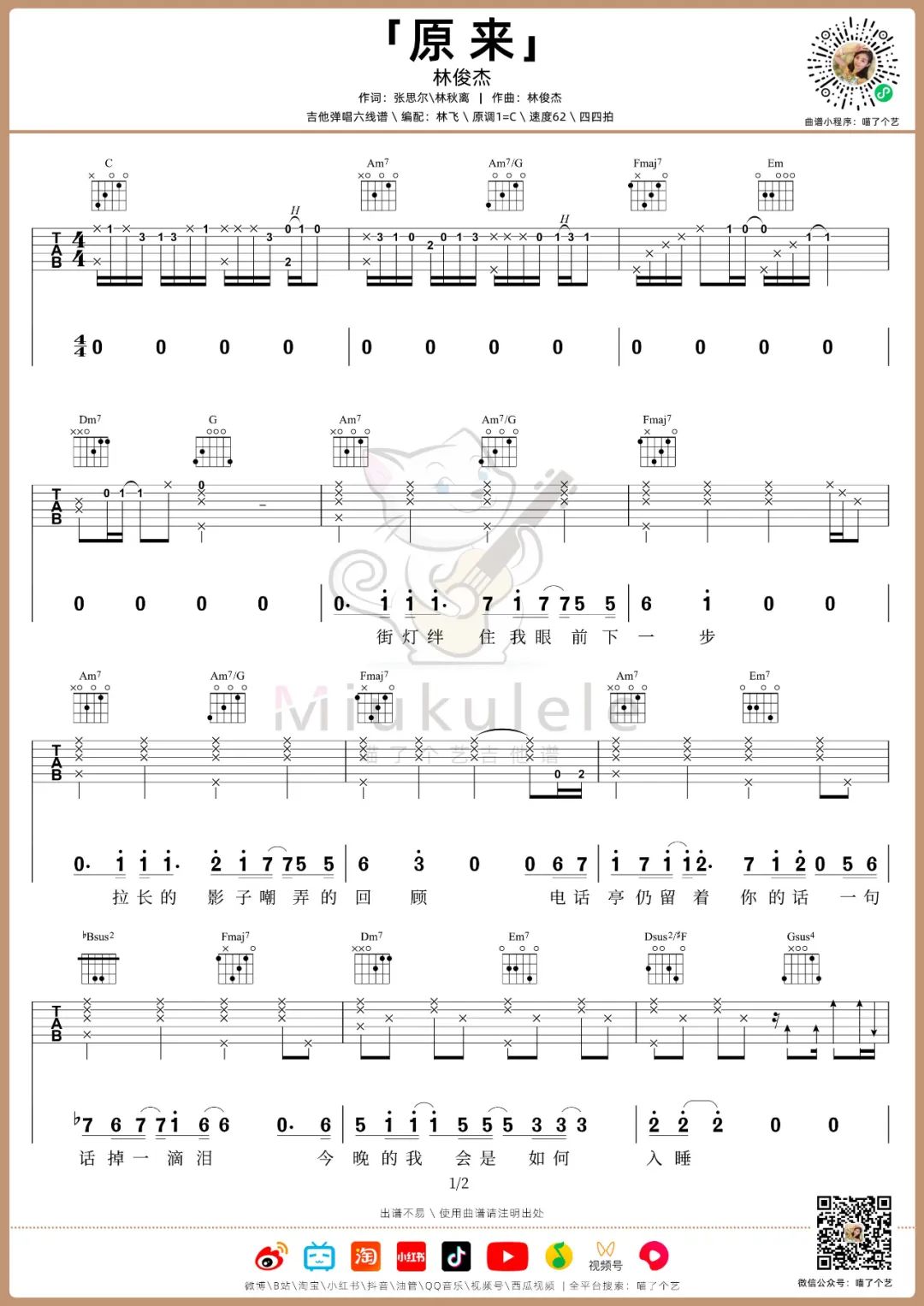琴谱网尊重作者版权,不会私自去掉作者提供的水印,此类图谱如需去掉水印,请自行去除后,通过站内自助上传打印即可。