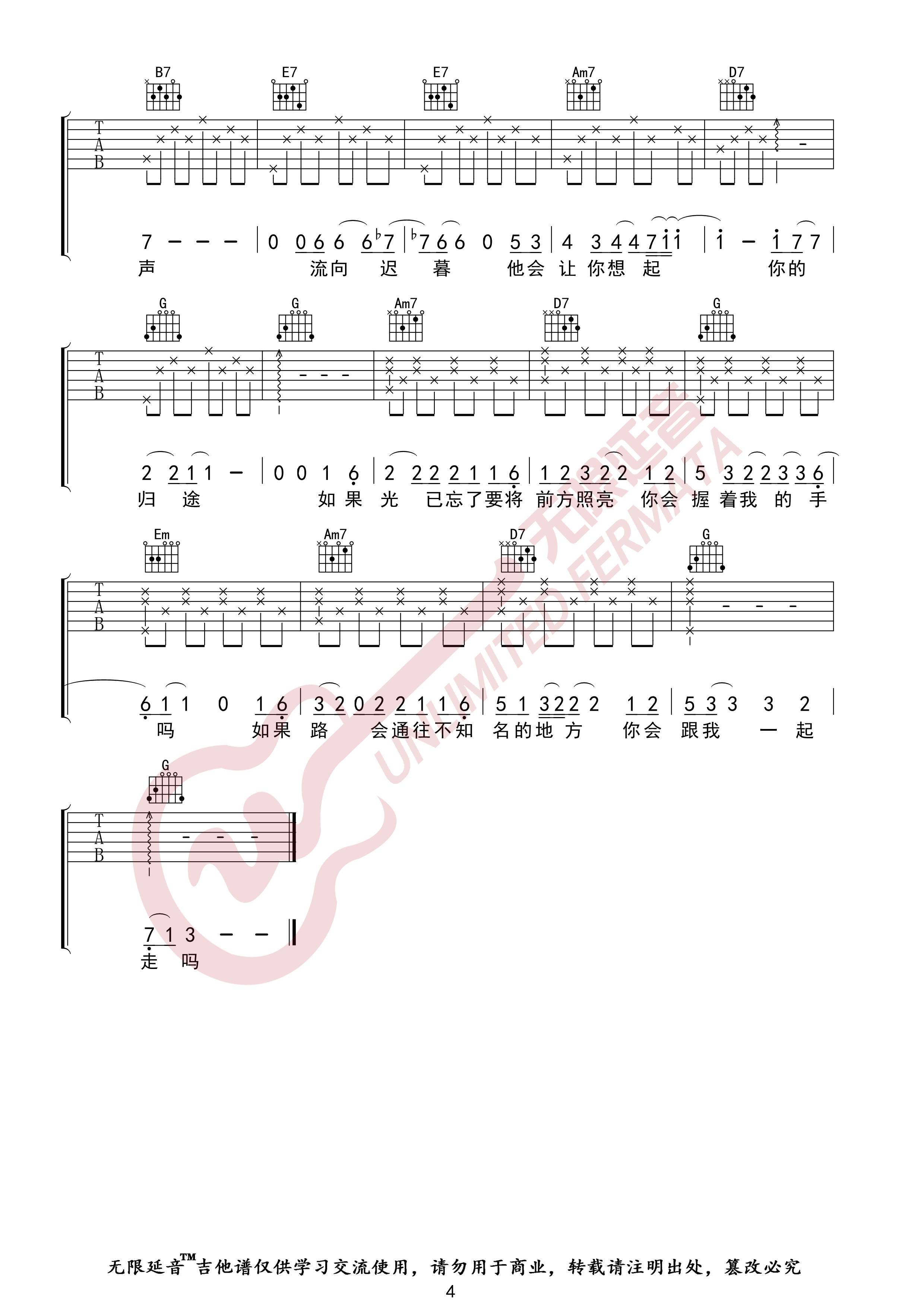 曲谱介绍: 吉他谱介绍:无问吉他谱,毛不易演唱的一首歌曲,4/4拍的节奏,这首歌曲的原调为B调,这里曲谱采用了G调指法进行编配,演唱时夹变调夹4品可回到原调,也可根据个人实际嗓音情况选择。共4张高清图片弹唱吉他谱例,来源于@无限延音编配出品。“你问我为什么爱你,我说不出理由;你问光为什么忘记照亮世界,我猜可能是黑夜太过沉重”。这首歌歌词不多,一首歌很快便也结束,缓缓道来依旧是毛不易以往的风格。