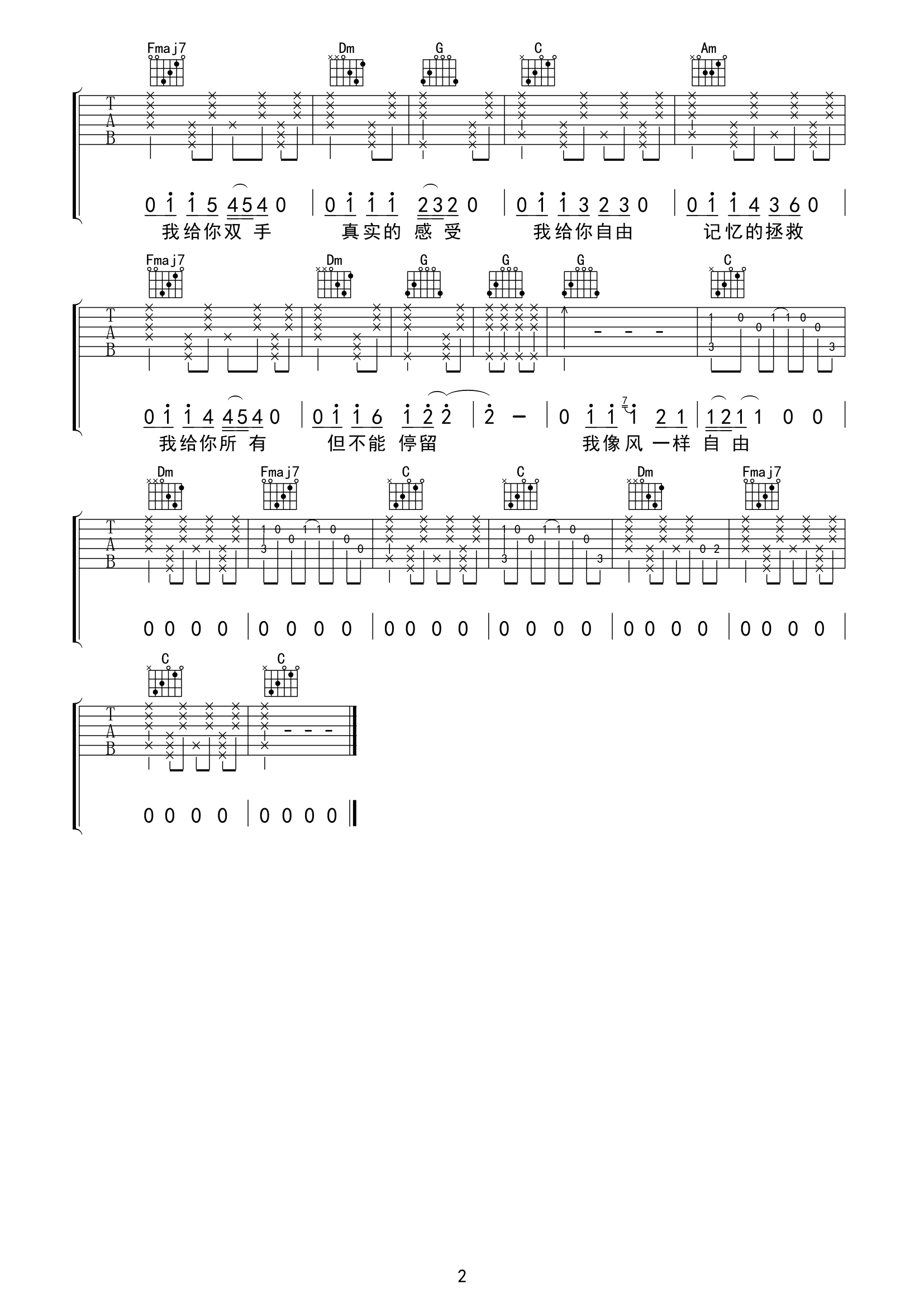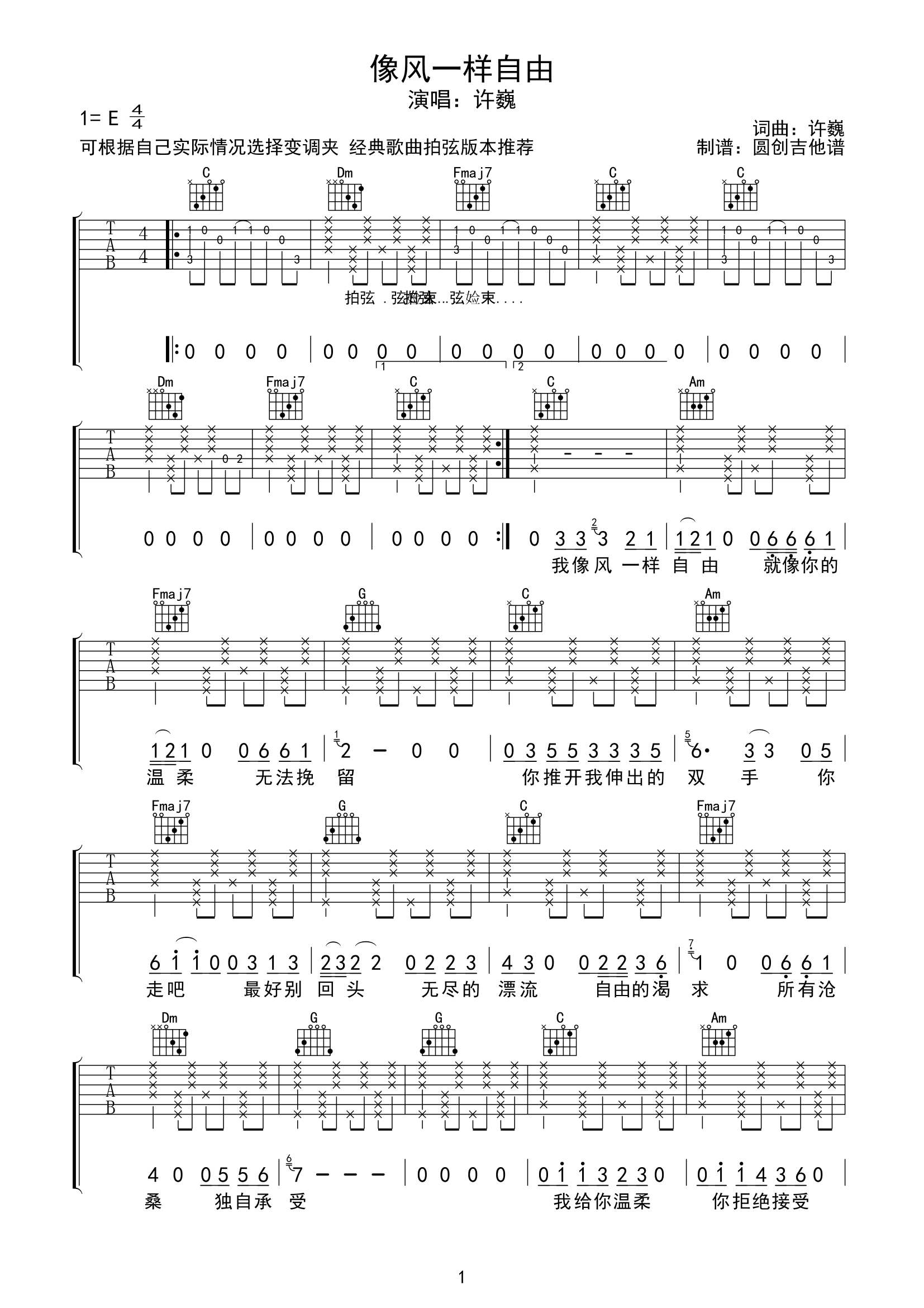 当前位置:琴谱网>吉他弹唱>像风一样自由
