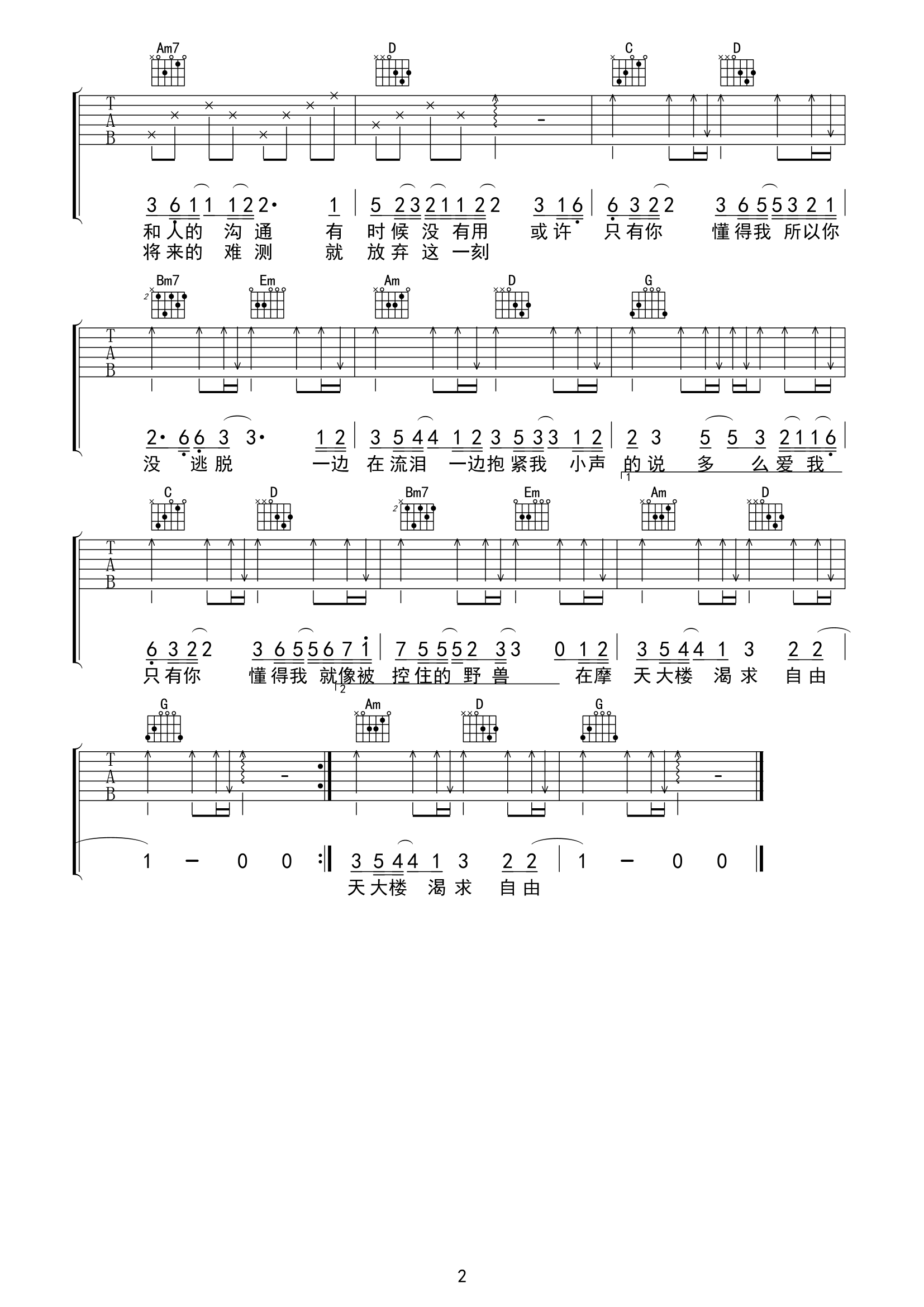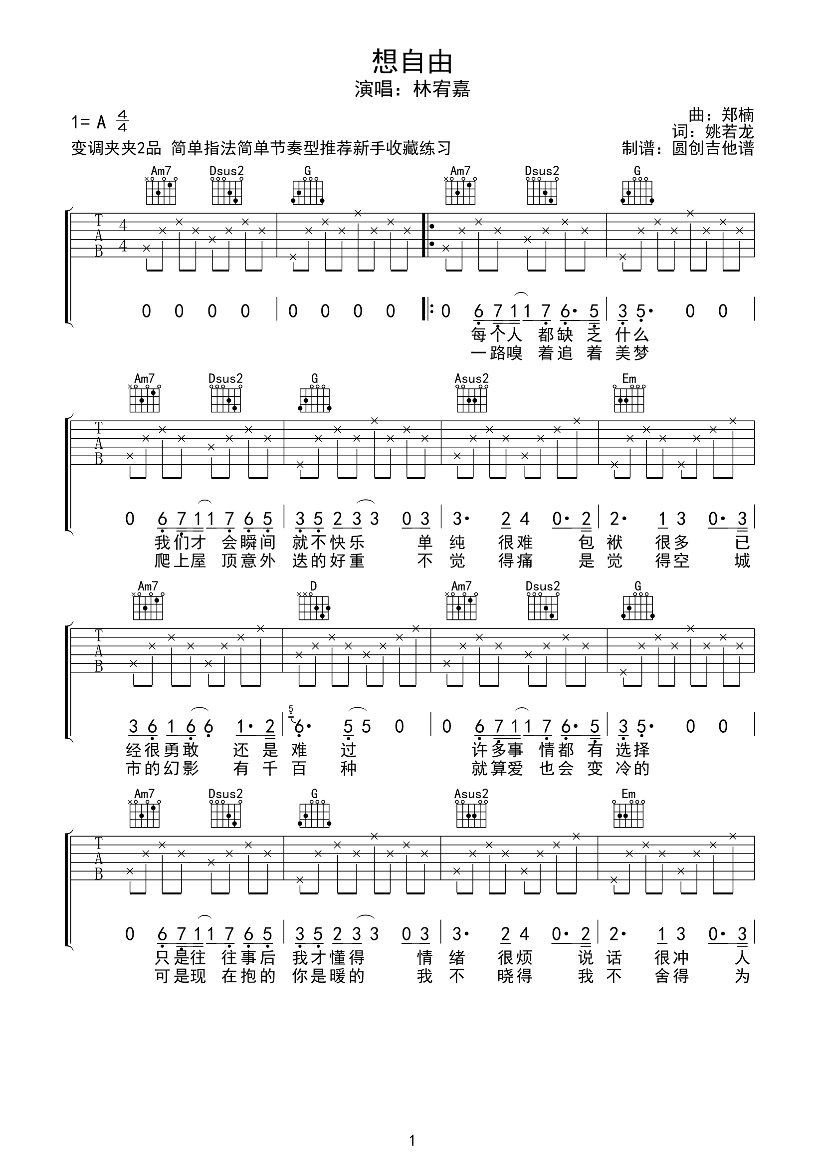 当前位置:琴谱网>吉他弹唱>想自由