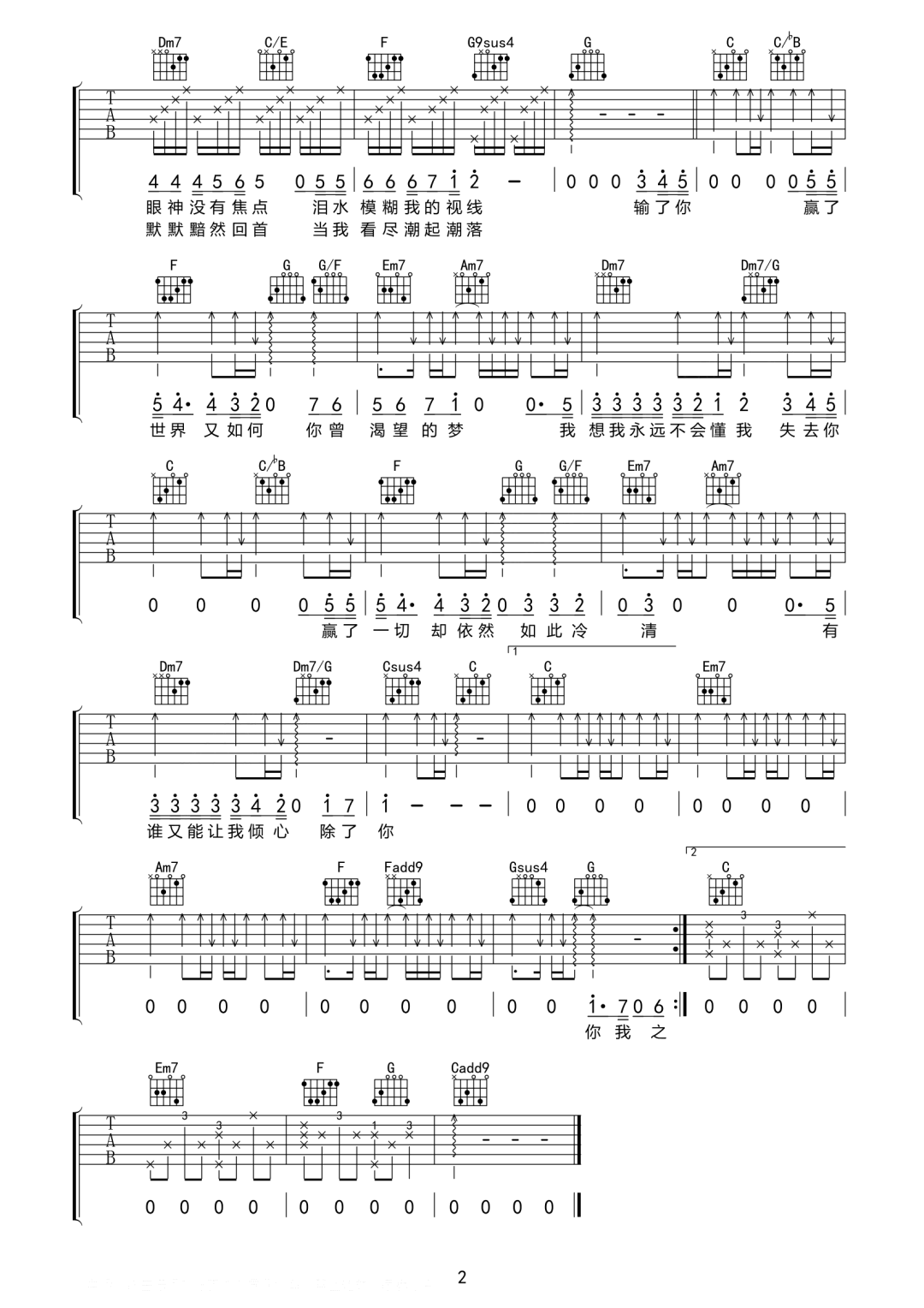 当前位置:琴谱网>吉他弹唱>输了你赢了世界又如何