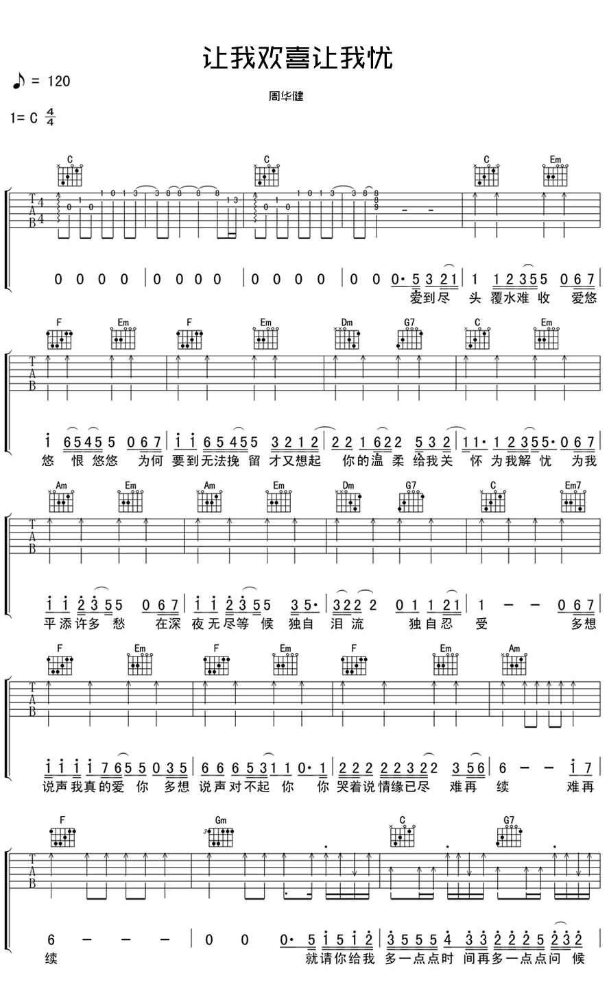 让我欢喜让我忧吉他谱 - 周华健 - C调吉他弹唱谱
