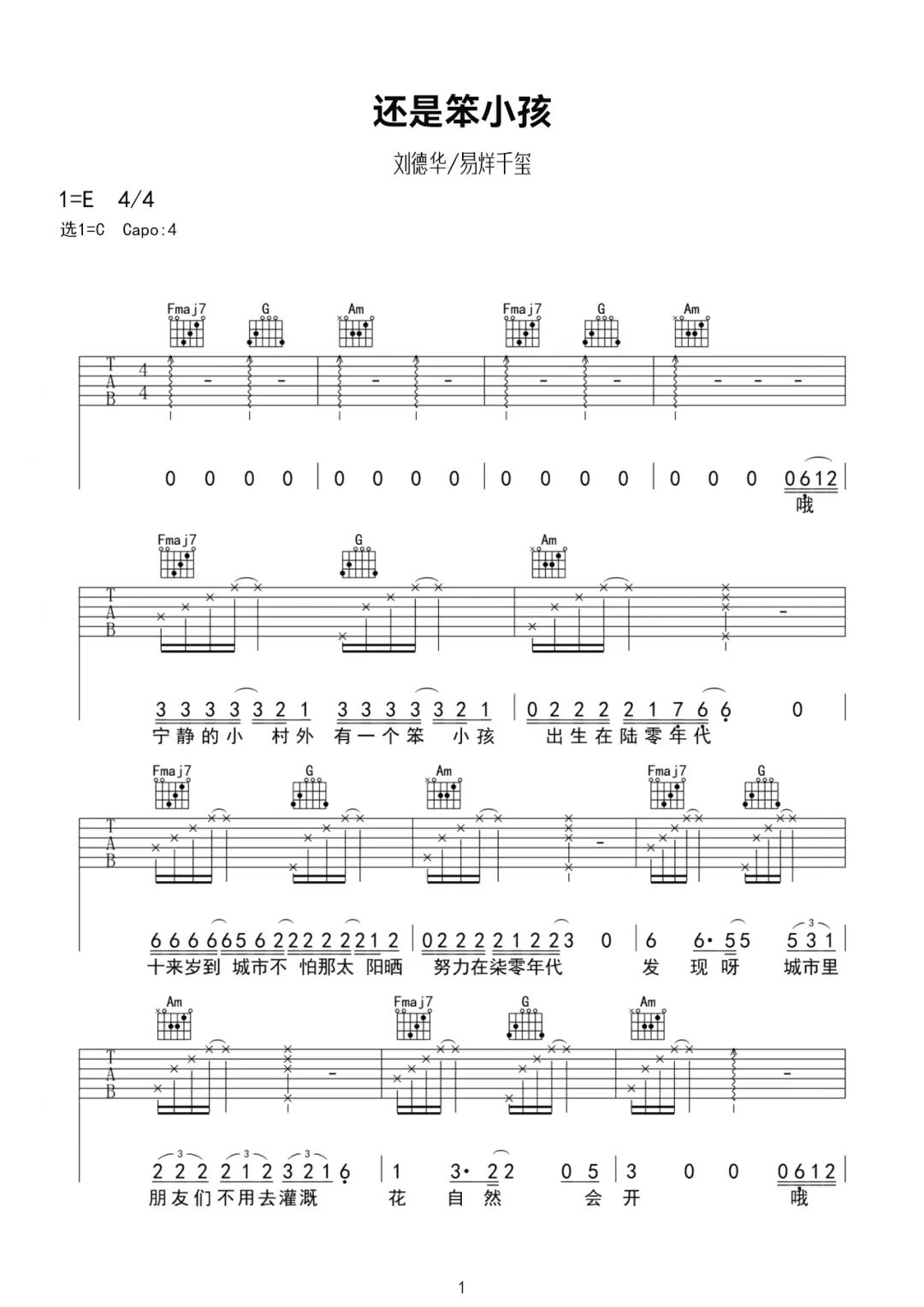 当前位置:琴谱网>吉他弹唱>还是笨小孩