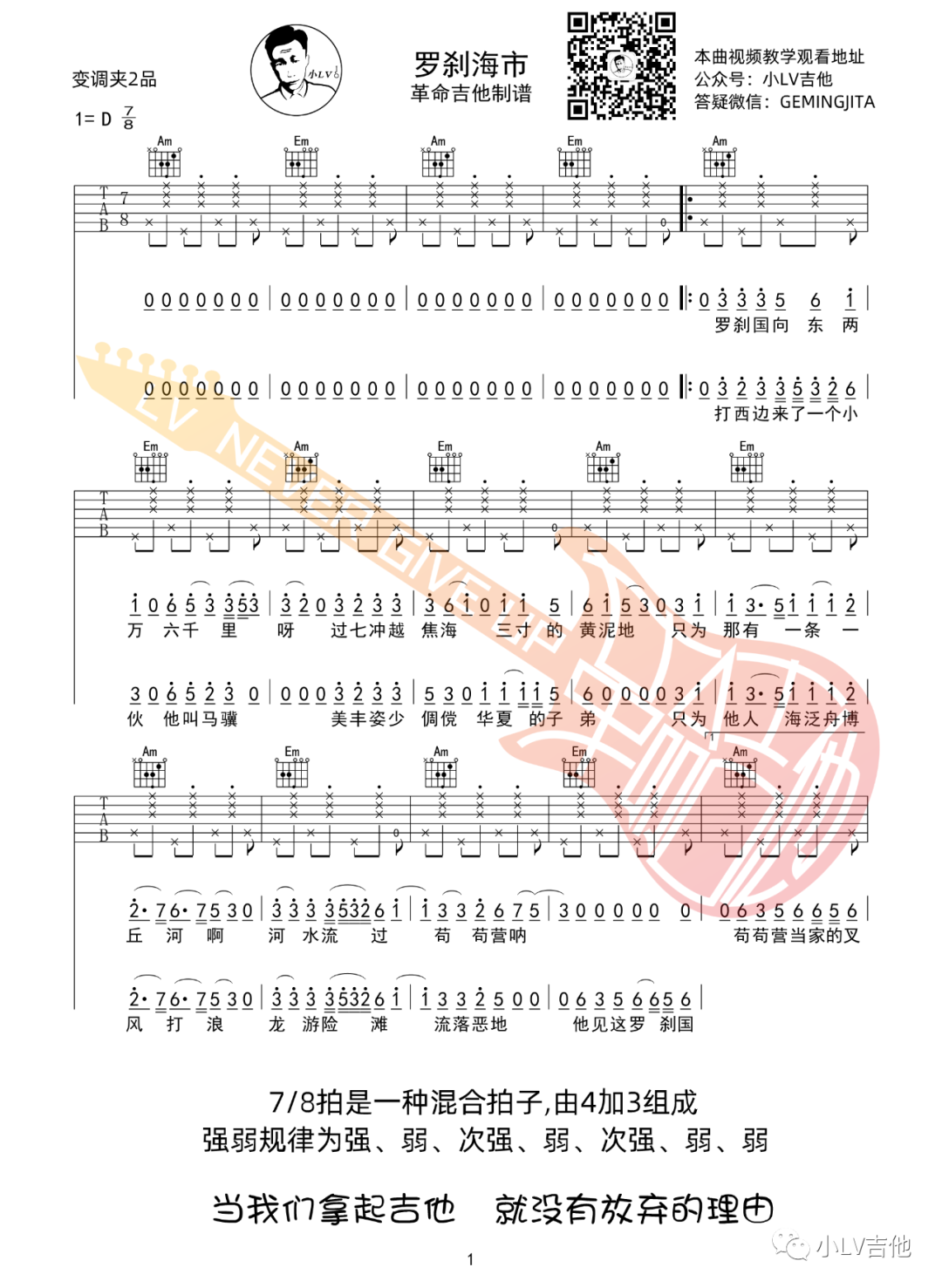 曲谱介绍: 刀郎《罗刹海市》吉他弹唱谱,共有3张高清图谱。