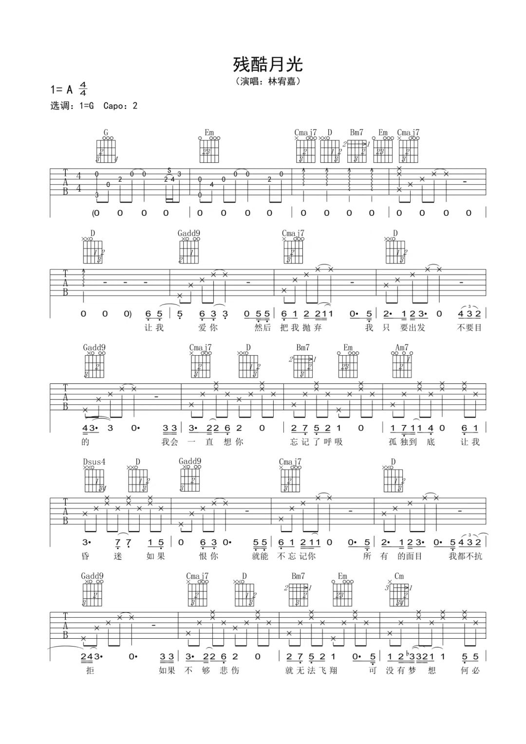 残酷月光吉他谱 - 林宥嘉 - G调吉他弹唱谱