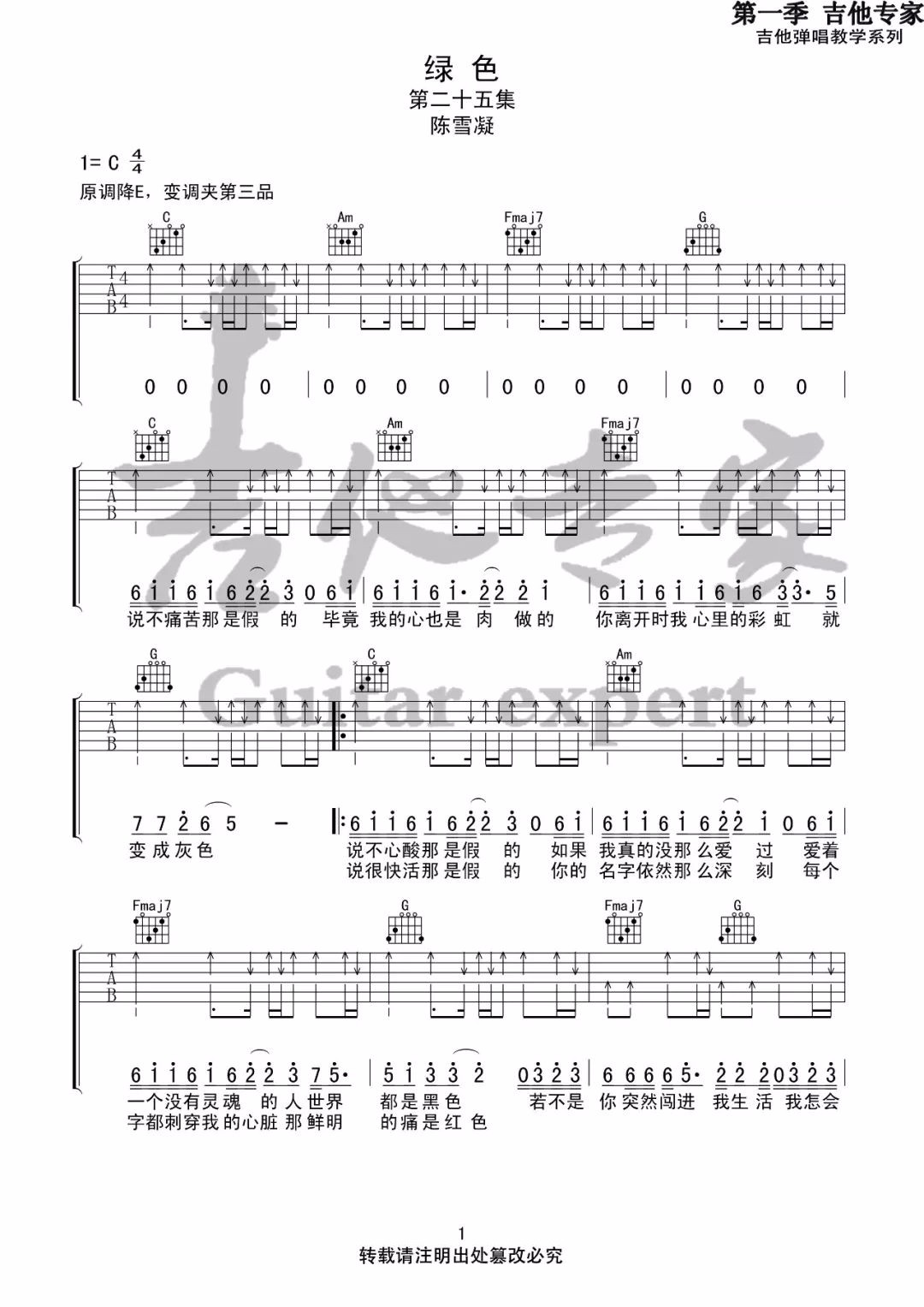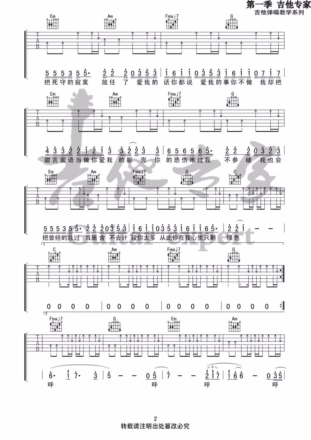 当前位置:琴谱网>吉他弹唱>绿色