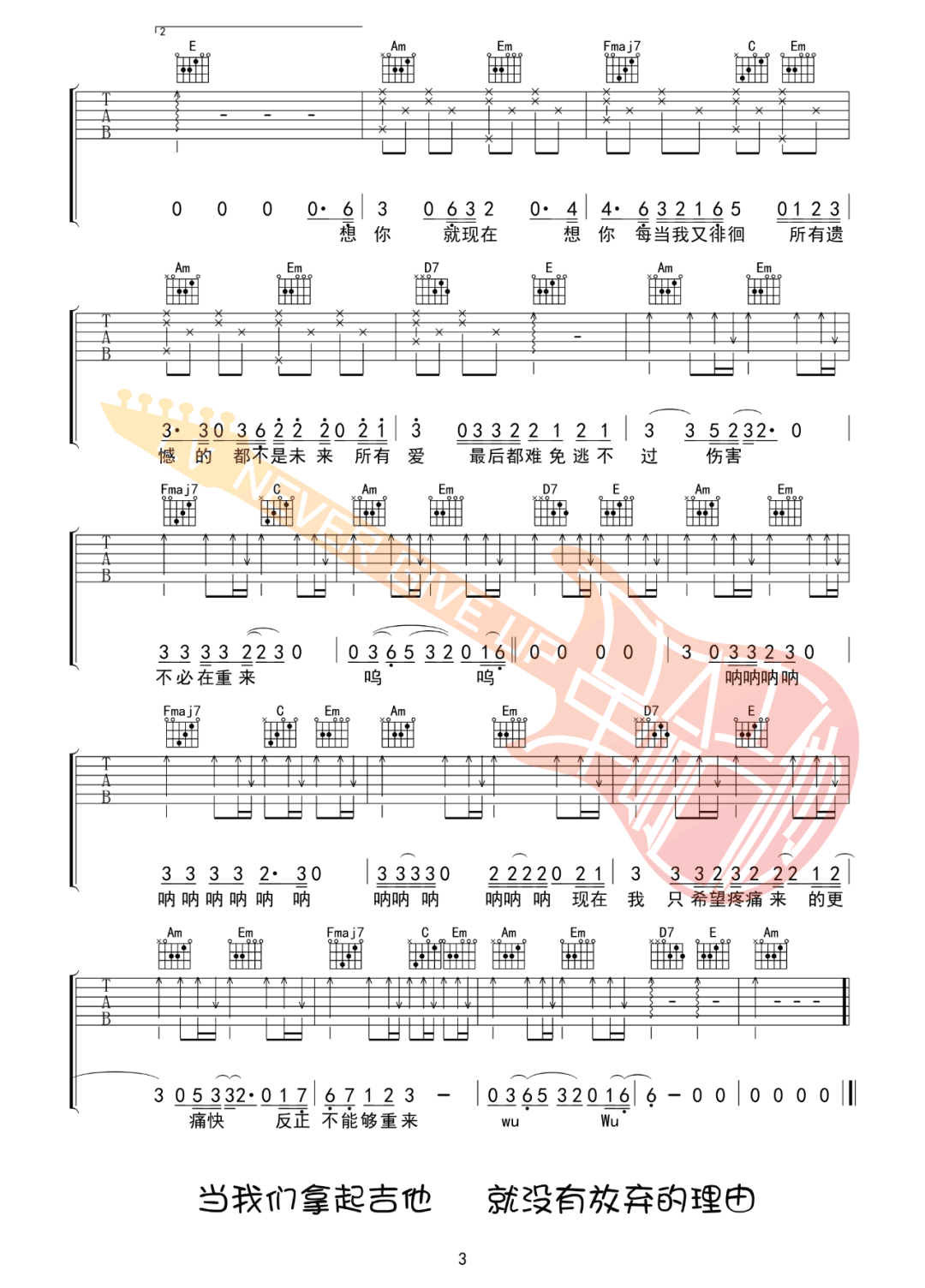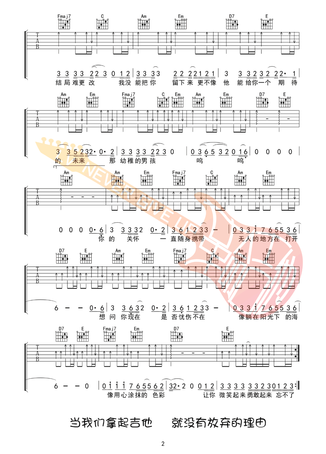 曲谱介绍: 梁博演唱的一首歌曲,4/4拍的节奏,这首歌曲的原调为#C调,这里曲谱采用了C调指法进行编配,演唱时夹变调夹1品可回到原调,也可根据个人实际嗓音情况选择。曲谱由琴谱网更新上传,来源于@革命吉他编配出品。曾经相爱,但为能把你留下来,结局注定难更改,更不能像他一样给你一个期待的未来。像一个无助的小孩,大多数男孩子,在最美好的年华,遇到了自己最喜欢的女孩,却也是在自己最无能为力的年纪。