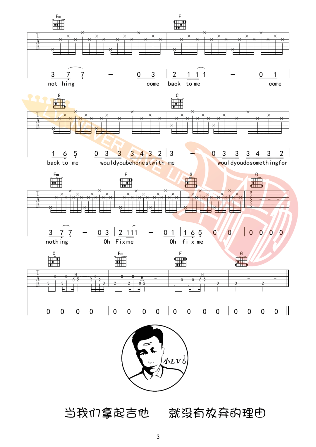 曲谱介绍: 薛之谦演唱的一首歌曲,4/4拍的节奏,这首歌曲的原调为D调,这里曲谱采用了C调指法进行编配,演唱时夹变调夹2品可回到原调,也可根据个人实际嗓音情况选择。曲谱由琴谱网更新上传,来源于@革命吉他编配出品。歌曲的基调是慢调,但去掉了一惯单一钢琴曲伴奏,用的是小提琴格调和空场,钢琴伴奏虽然有,但也只有一少部分中空,而且不会太明显,不仅从把语言替换了,伴奏也做了改动。
